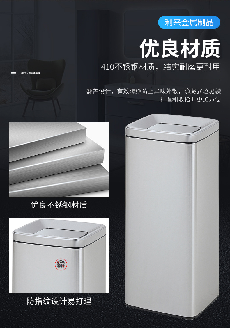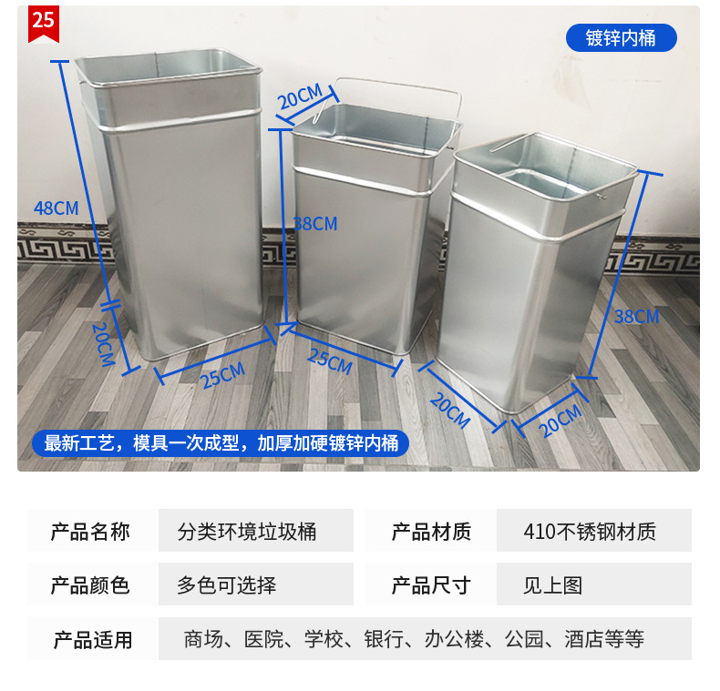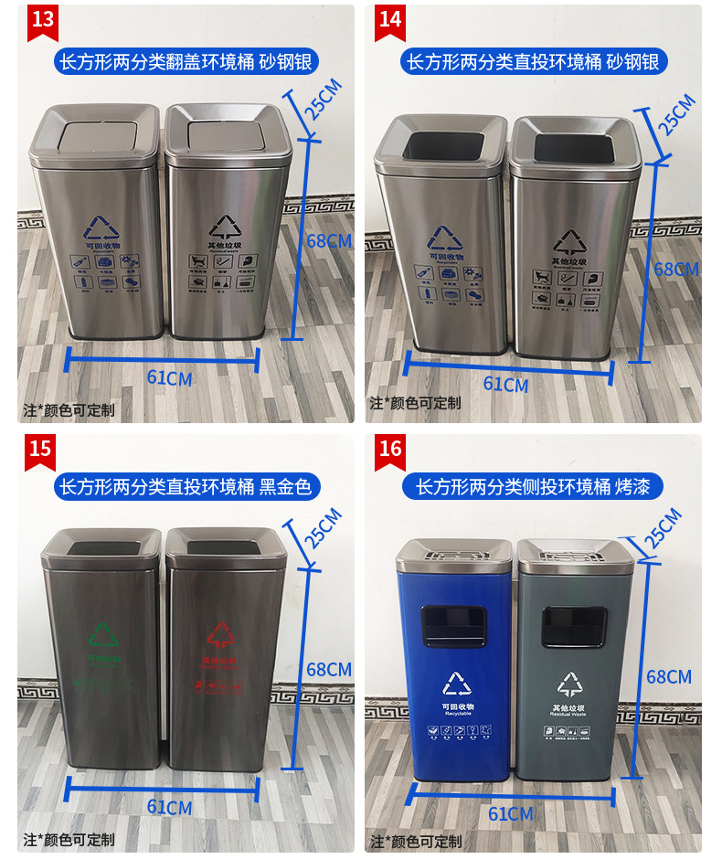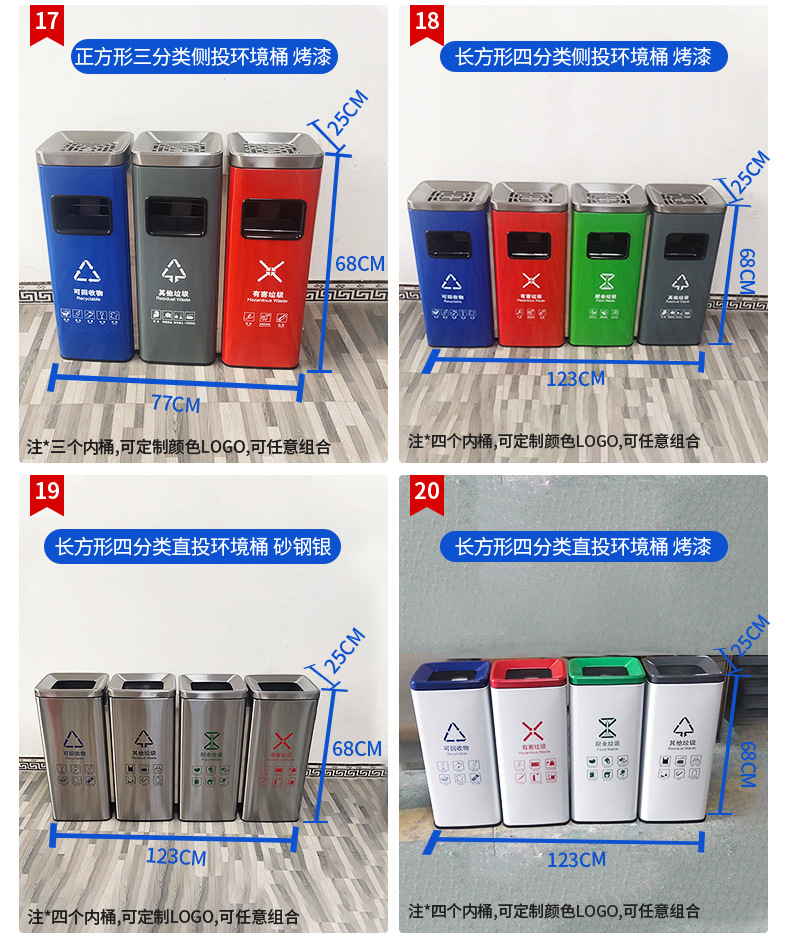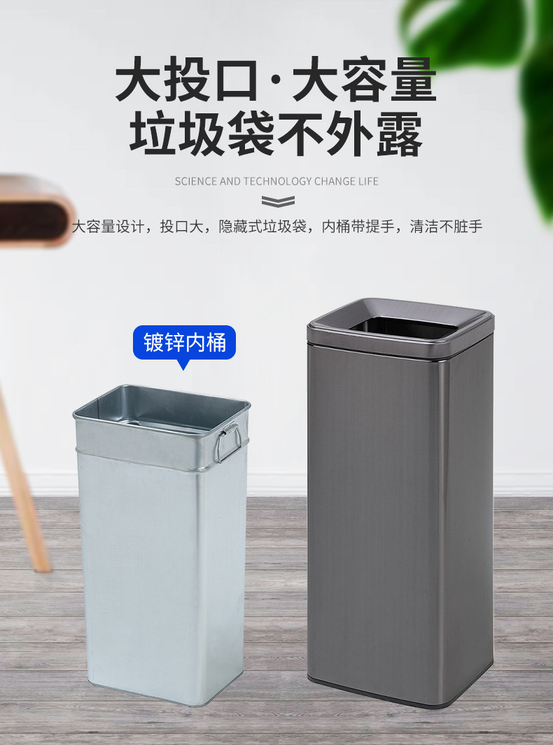 Thùng rác phân loại mở bằng thép không gỉ thẳng đứng có thể cung cấp cho trung tâm mua sắm thùng rác ngoài trời ở sảnh khách sạn