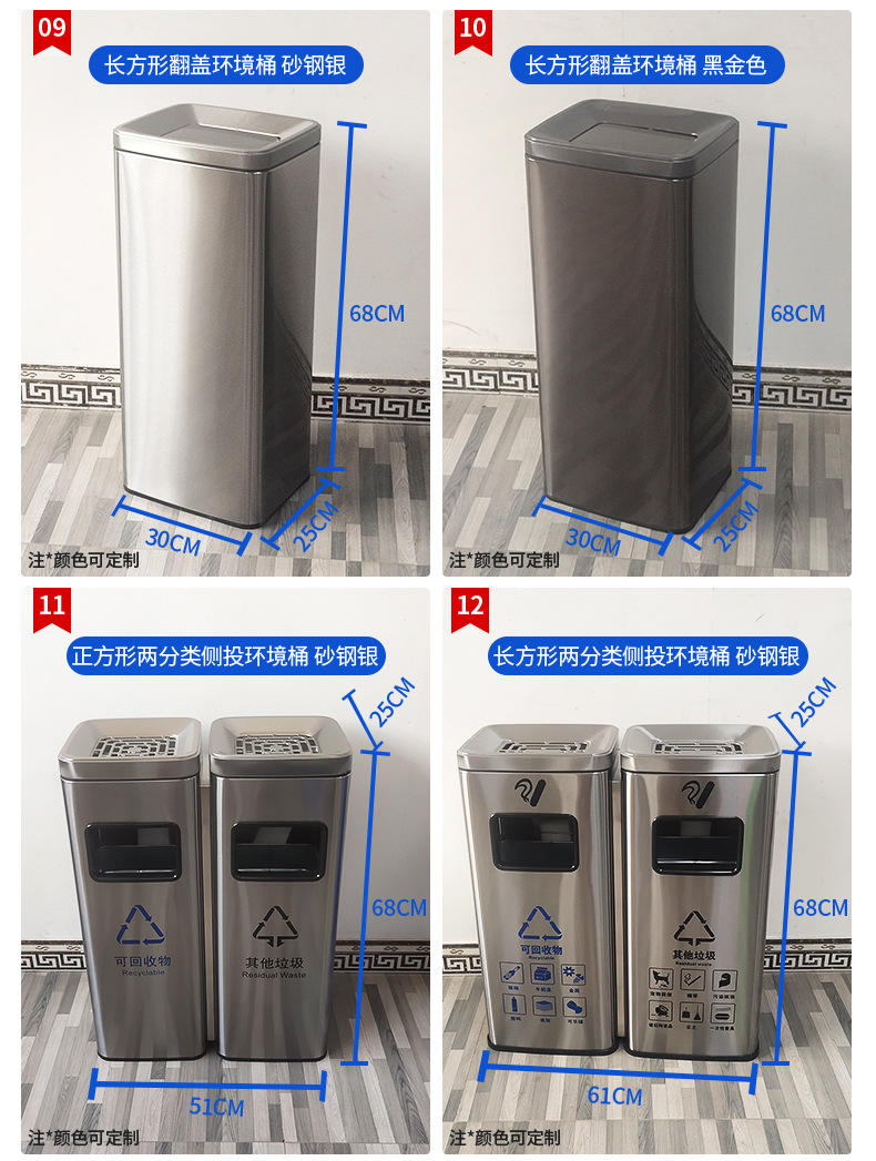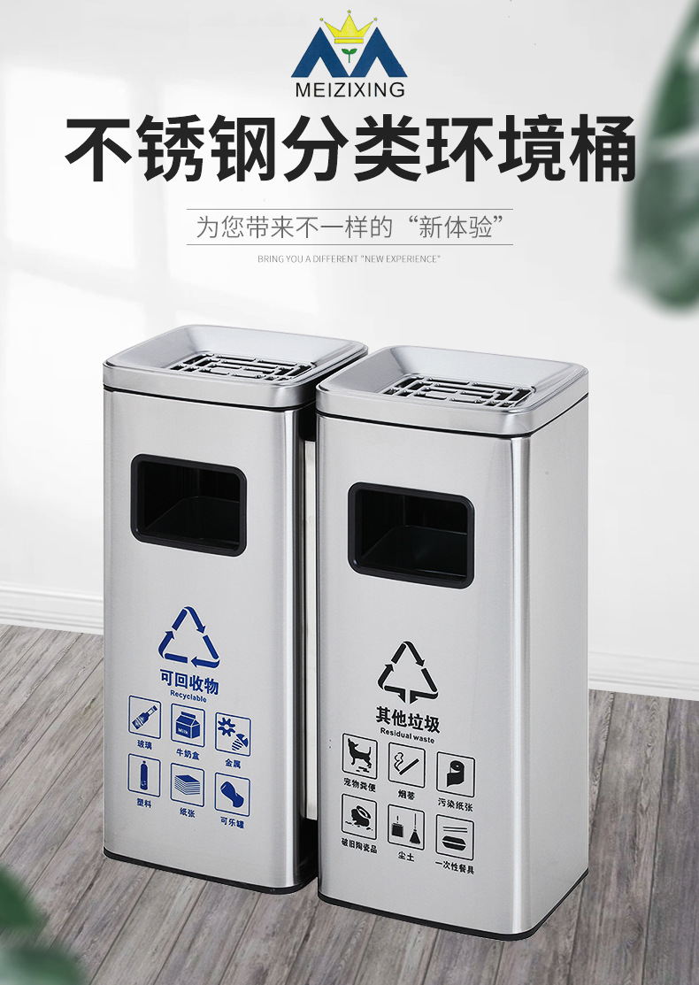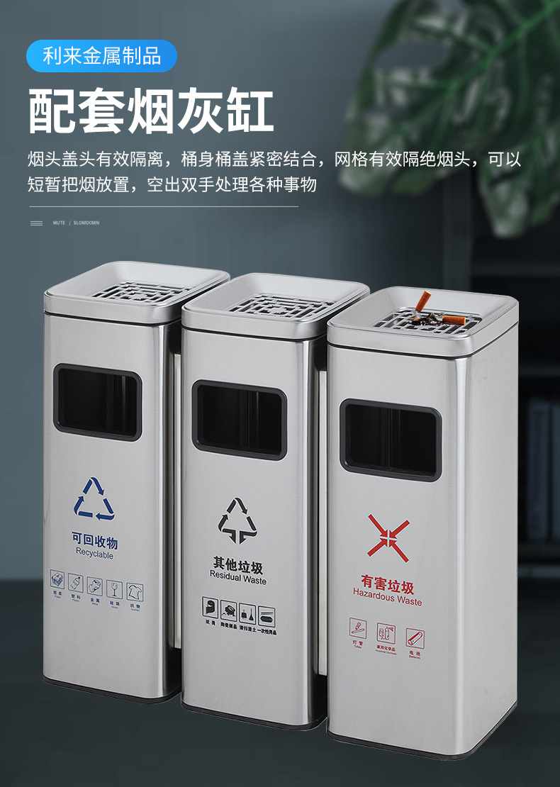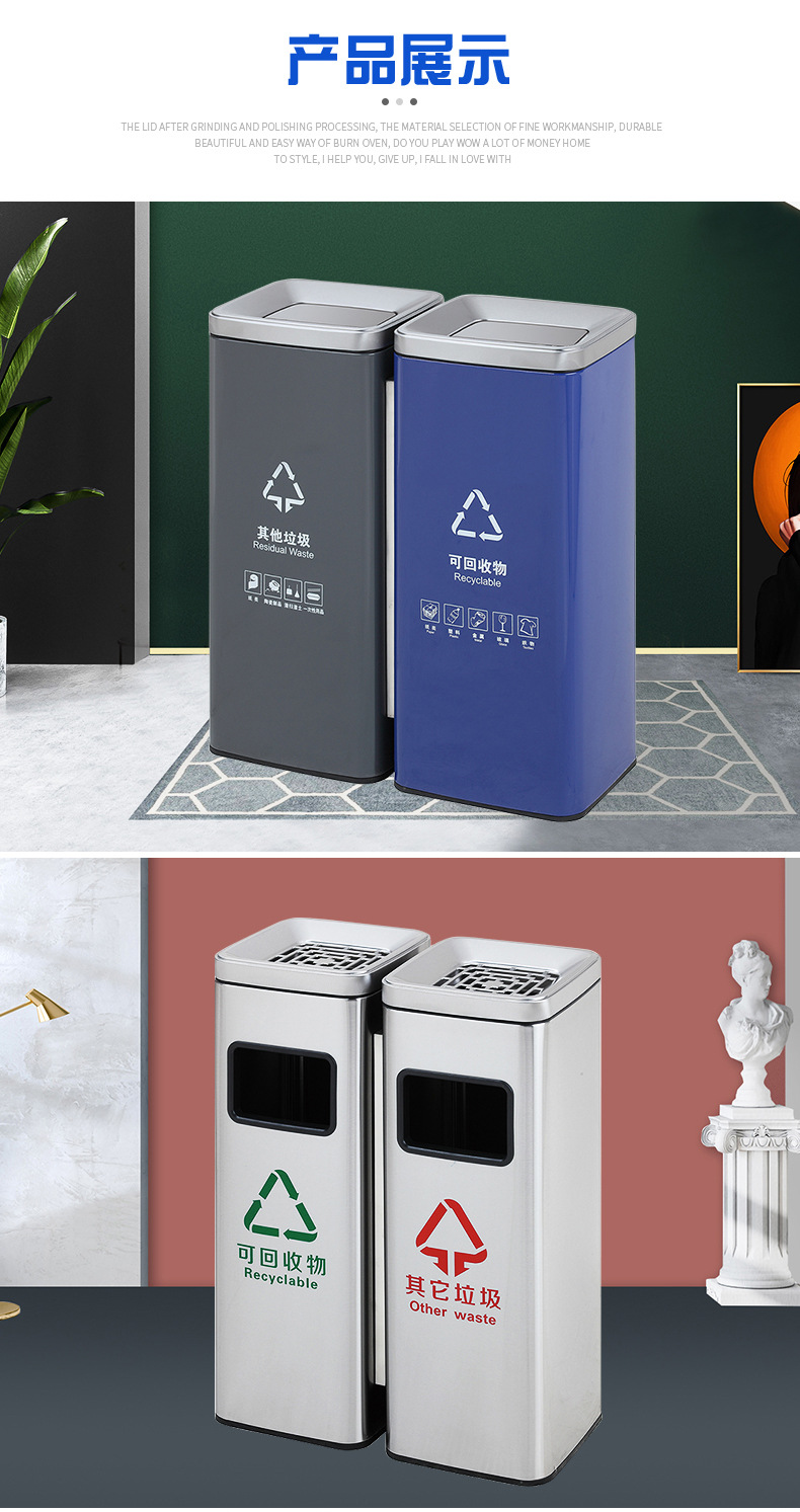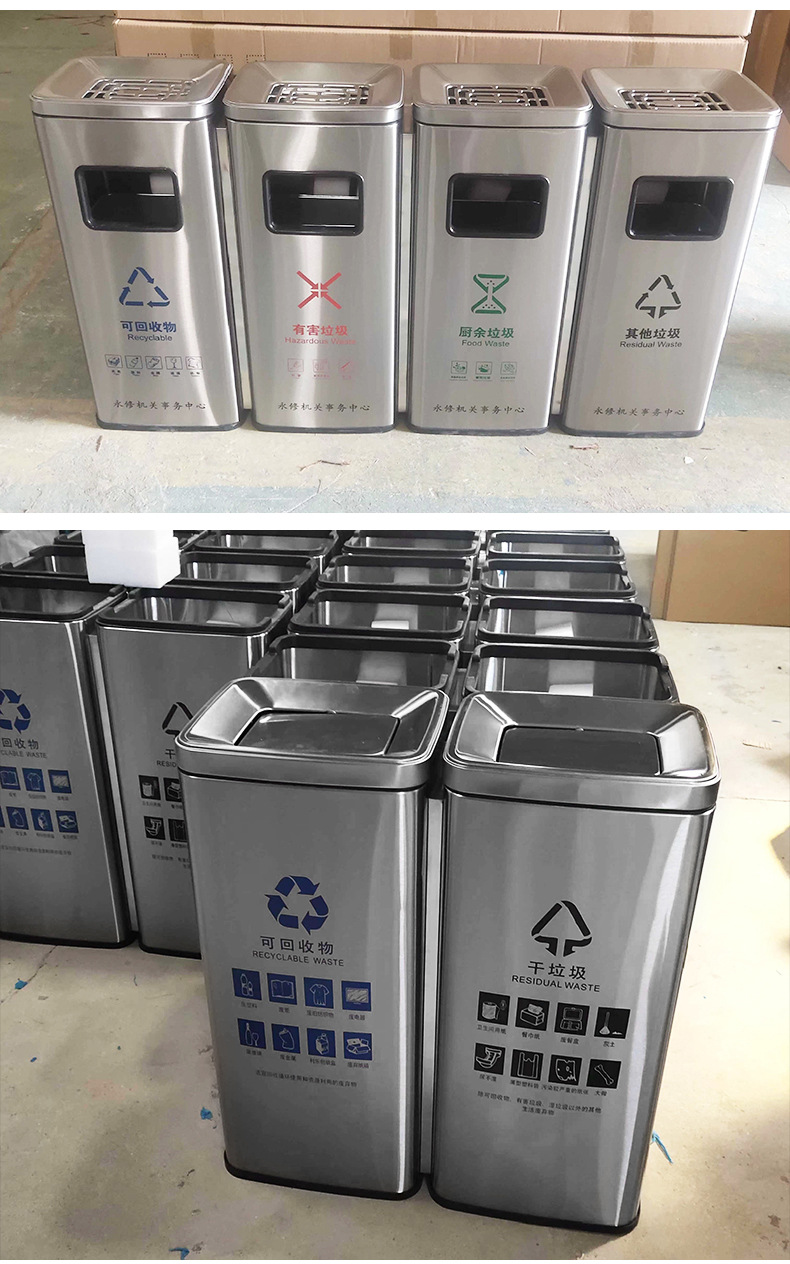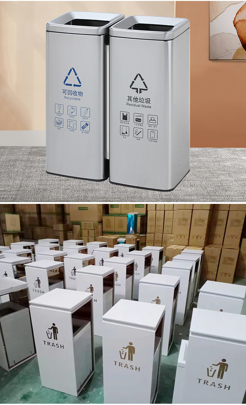 Thùng rác phân loại mở bằng thép không gỉ thẳng đứng có thể cung cấp cho trung tâm mua sắm thùng rác ngoài trời ở sảnh khách sạn