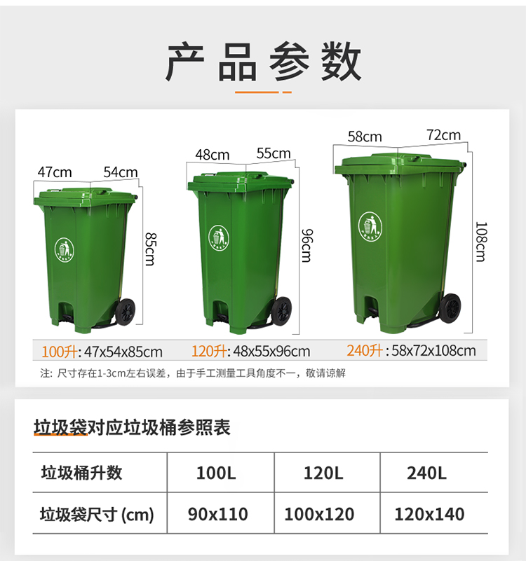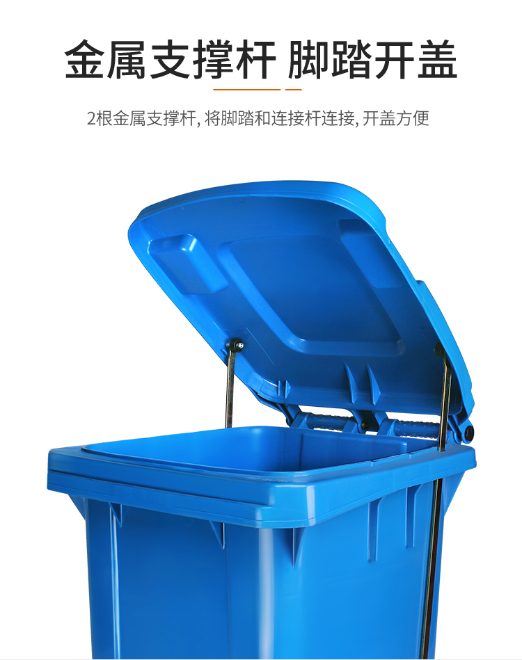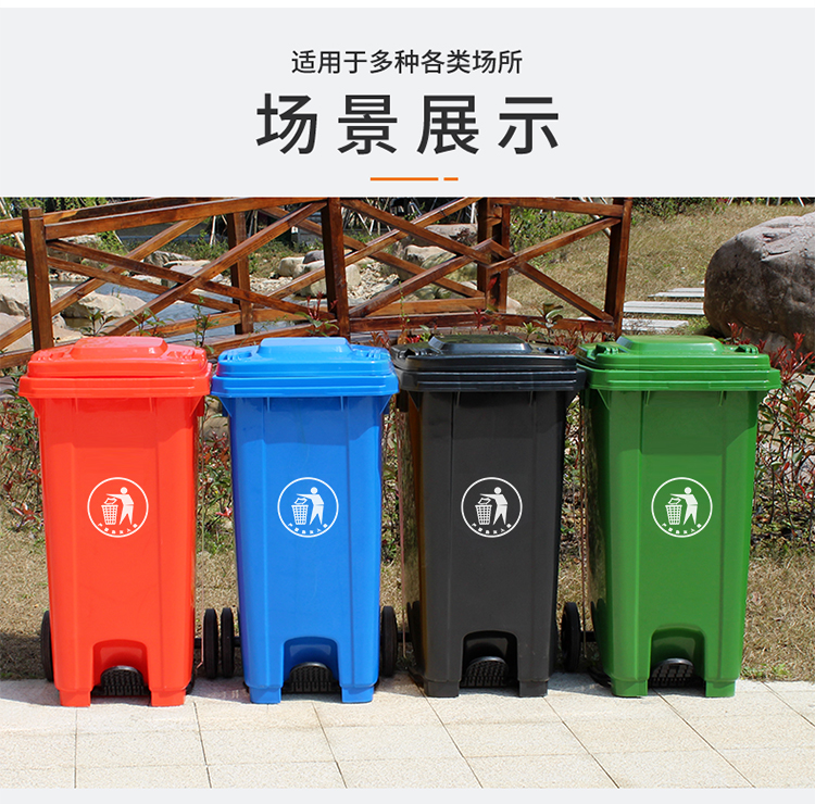 Thùng rác phân loại ngoài trời 240L lít hoạt động bằng chân có nắp và bánh xe lớn thùng rác công cộng vệ sinh thương mại