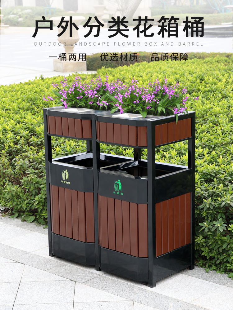 Thùng rác phân loại ngoài trời lớn ngoài trời chống ăn mòn gỗ phong cảnh cảnh quan bóc vỏ hộp vân gỗ có thể trồng hoa cỏ Thùng rác là lựa chọn lý tưởng cho không gian công cộng, sân vườn hoặc khu đô thị. Sản phẩm giúp nâng cao hình ảnh chuyên nghiệp và sạch đẹp cho môi trường sống.