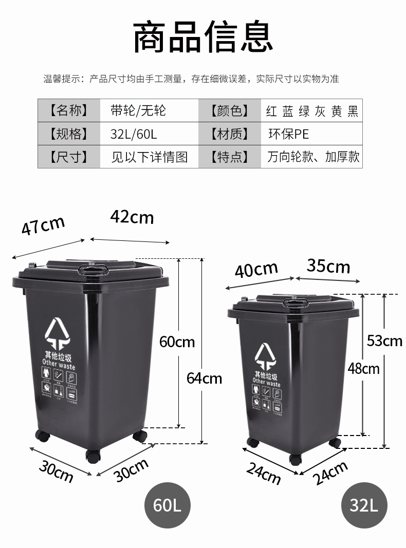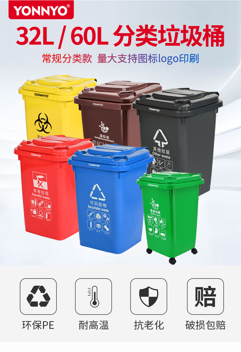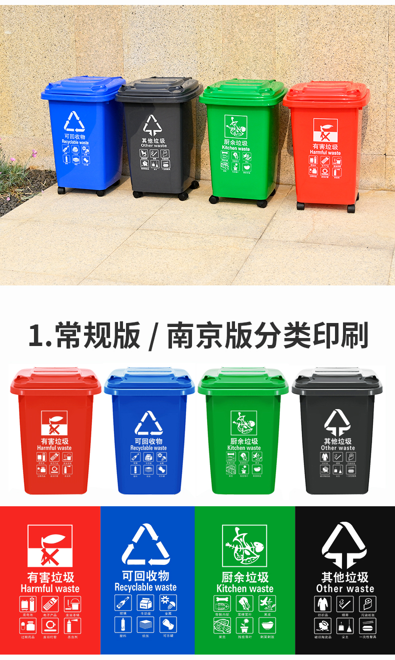 Thùng rác phân loại rác Tô Châu có nắp thùng lớn thương mại 30L60L100L120L thùng vệ sinh dung tích lớn ngoài trời
