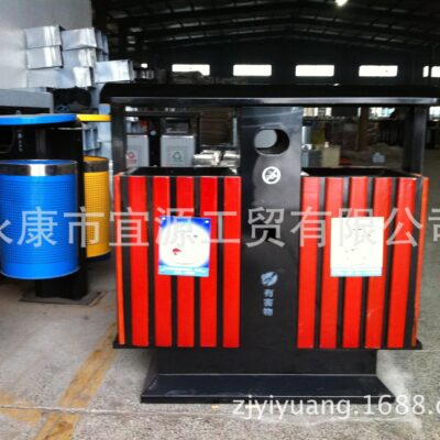 Thùng rác phân loại Yiyuan hộp vỏ trái cây thùng rác gỗ thép ngoài trời thùng rác cao cấp