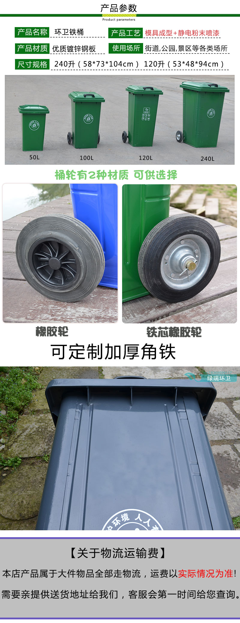 Sản phẩm nổi bật với các đặc điểm: Rơ moóc vệ sinh ngoài trời 240L thùng rác sắt thùng sắt bất động sản lớn đường phố phân loại ngoài trời có nắp hộp da trái cây