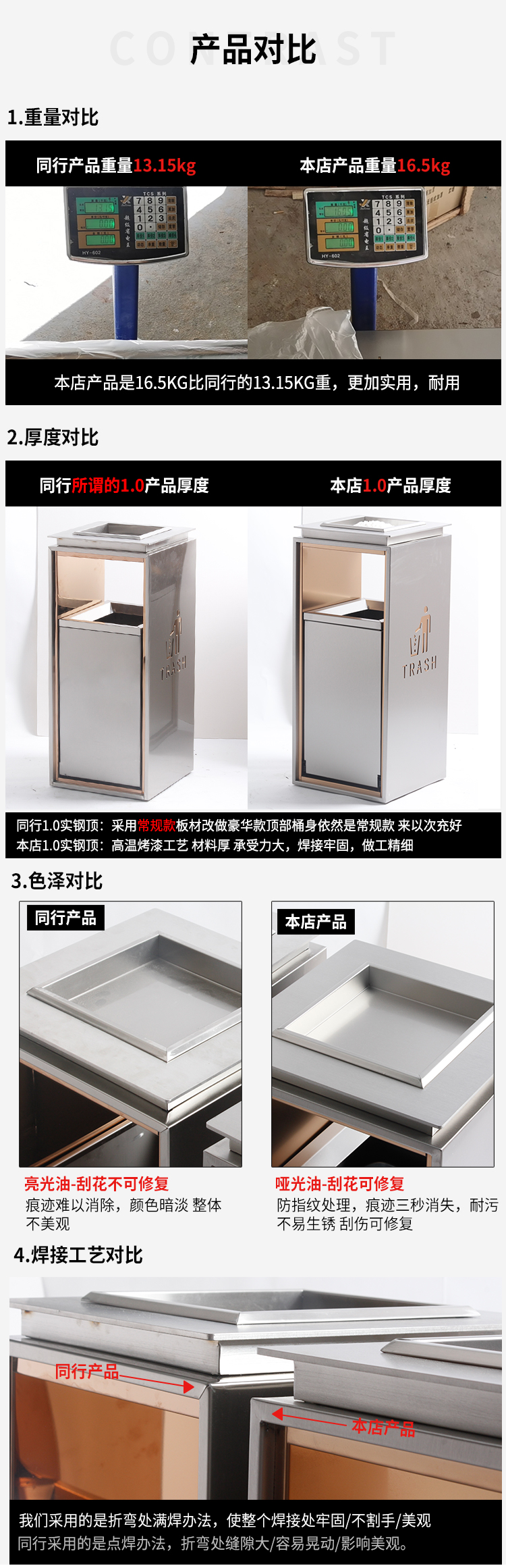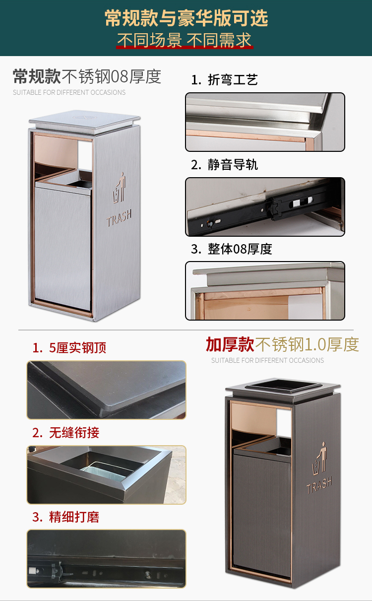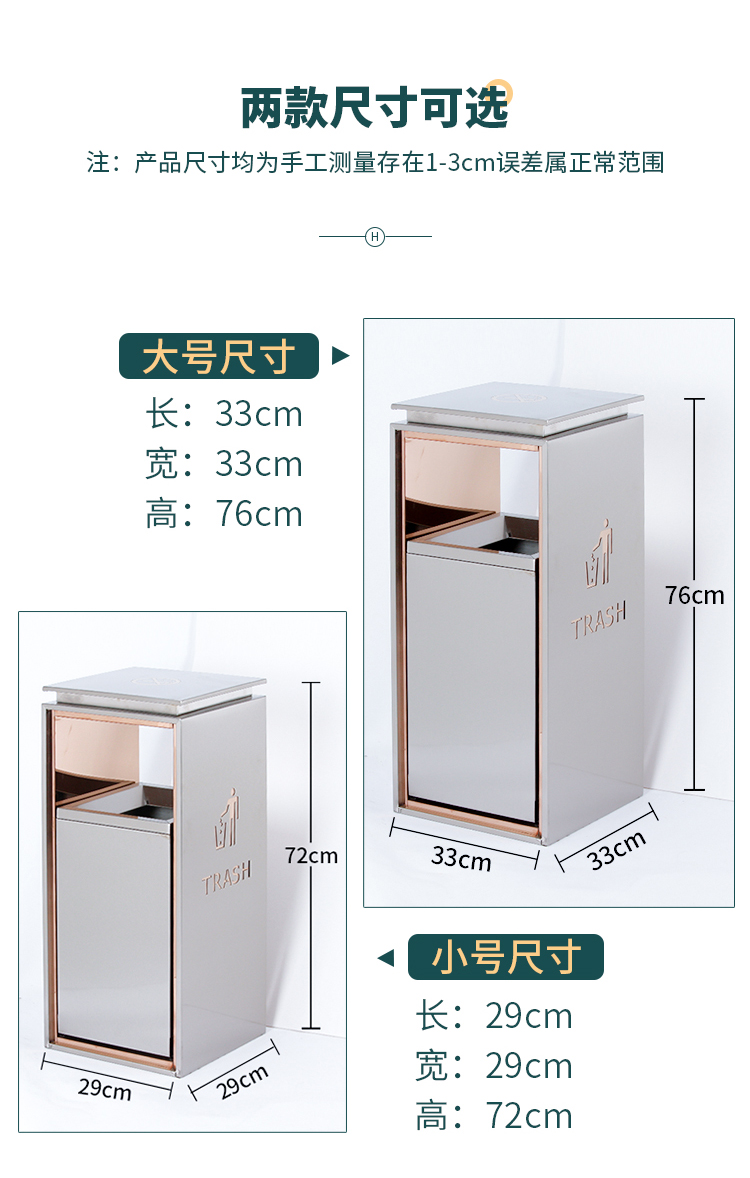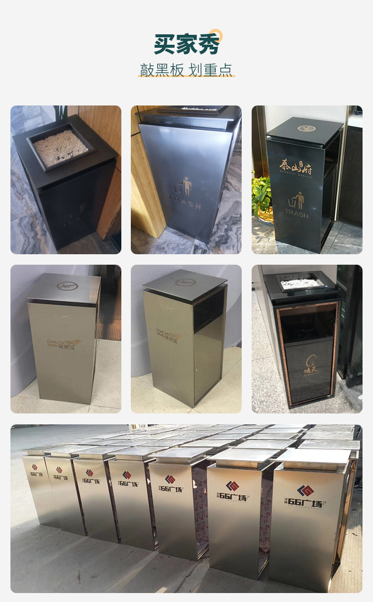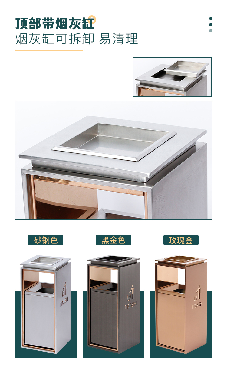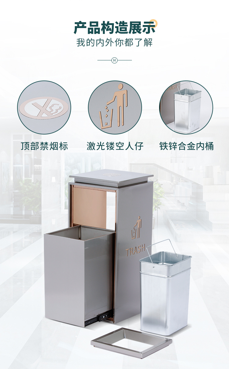 Thùng rác sảnh khách sạn tùy chỉnh thương mại thùng rác với gạt tàn thuốc lá sảnh thang máy lối vào thang máy dọc hộp vỏ thép không gỉ