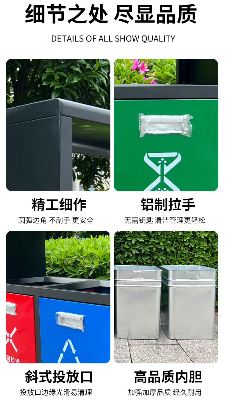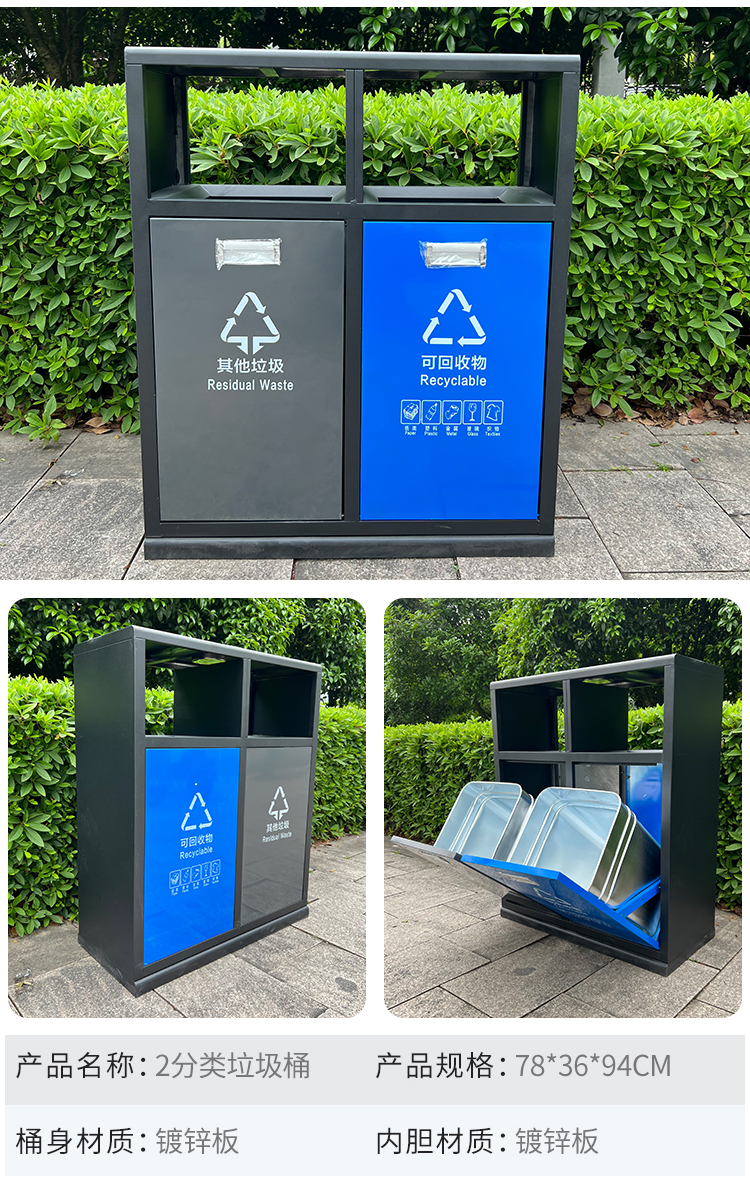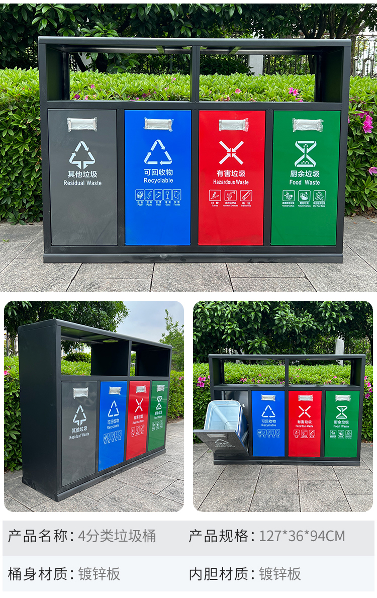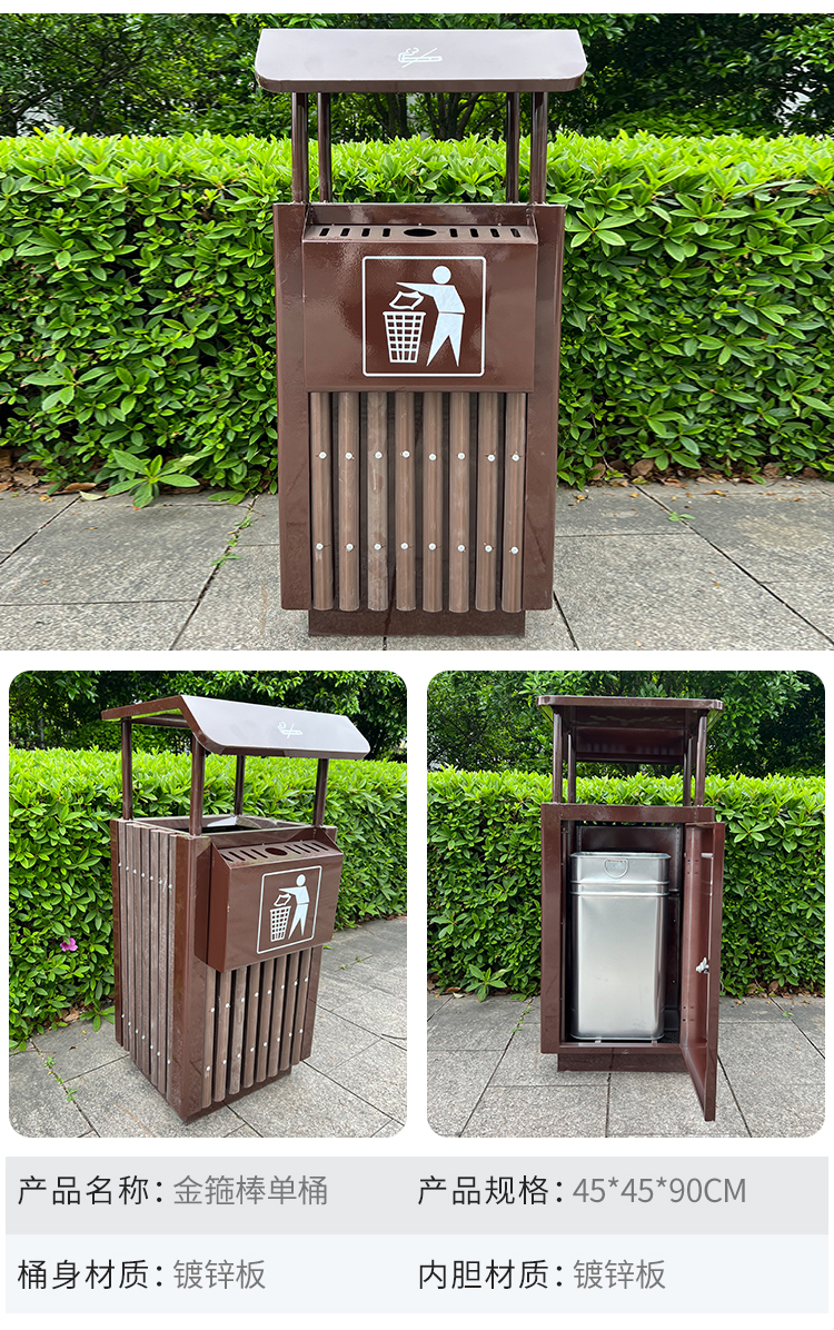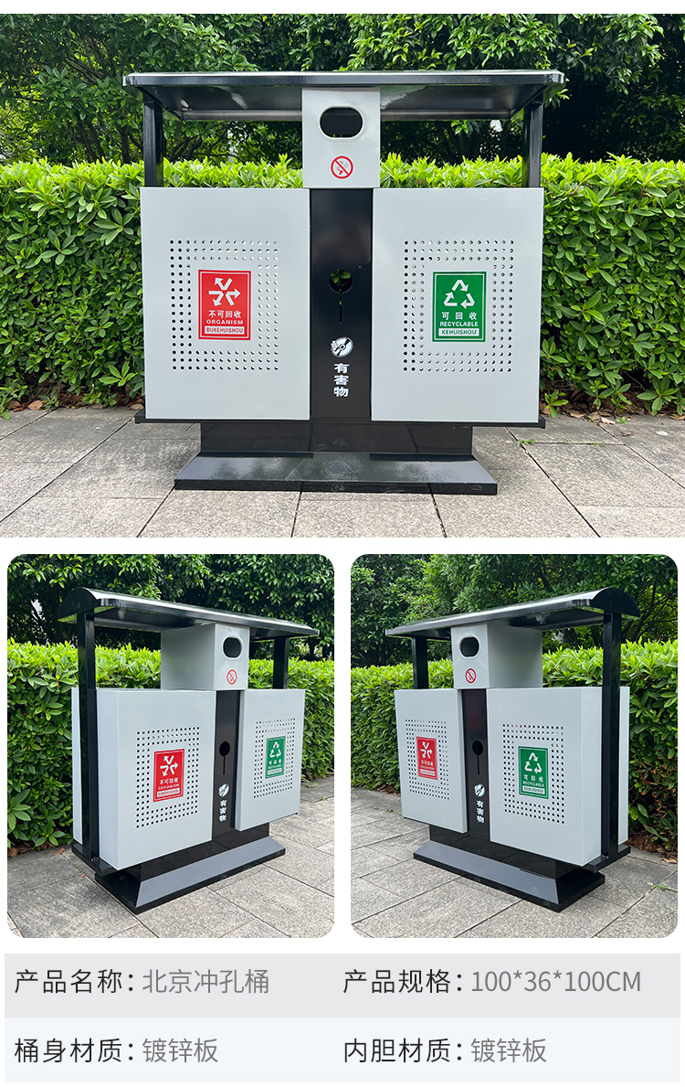 Sản phẩm nổi bật với các đặc điểm: Thùng rác tấm mạ kẽm ngoài trời thùng rác cộng đồng phân loại hộp vệ sinh hộp đựng rác ngoài trời lớn thùng rác bằng thép không gỉ ngoài trời thùng đơn và thùng đôi