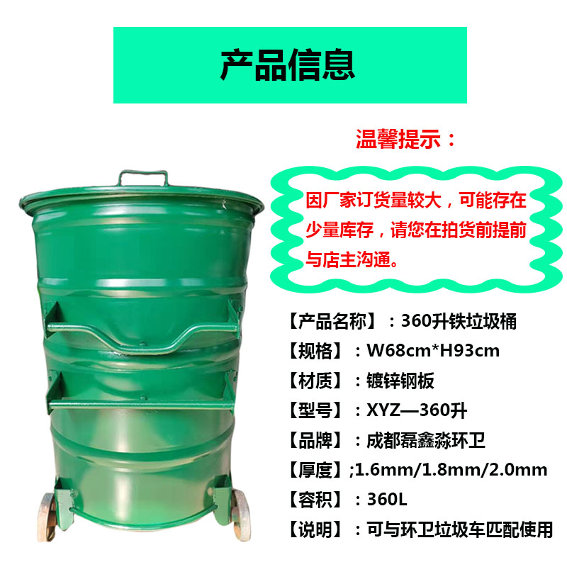 Sản phẩm nổi bật với các đặc điểm: Thành Đô 360 lít thùng rác sắt ngoài trời thùng rác lớn vệ sinh môi trường thành phố đặc biệt xe moóc tròn dày ngoài trời Nhà máy sản xuất thùng sắt ngoài trời