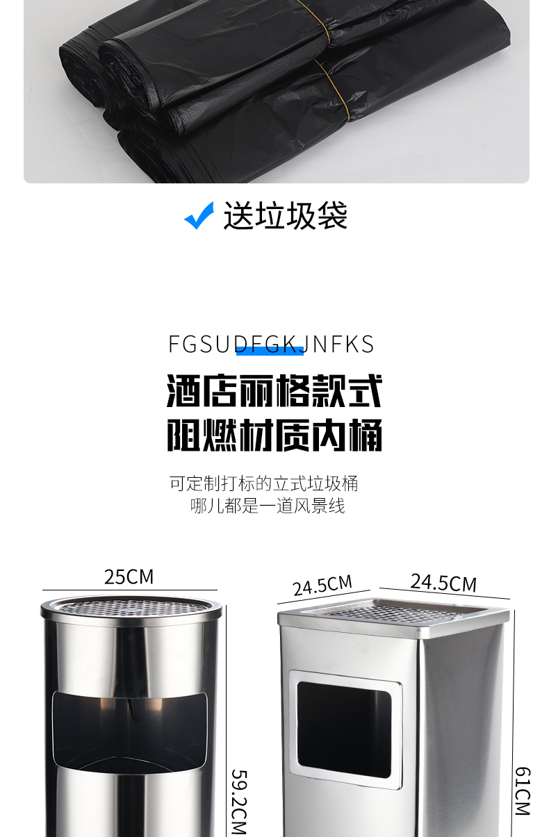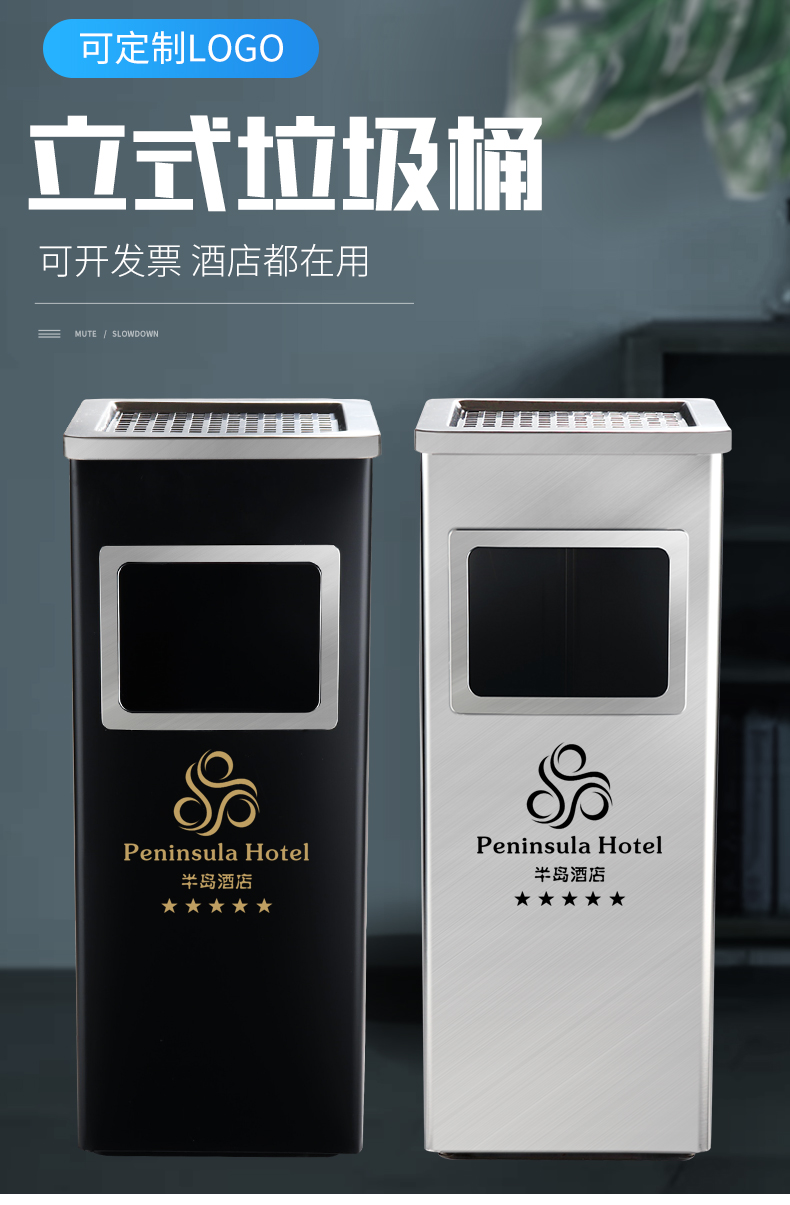 Thùng rác thép không gỉ thùng rác sảnh khách sạn thương mại cột tàn thuốc lá dọc hành lang khu vực hút thuốc ngoài trời thang máy miệng thùng dập khói
