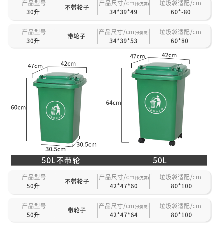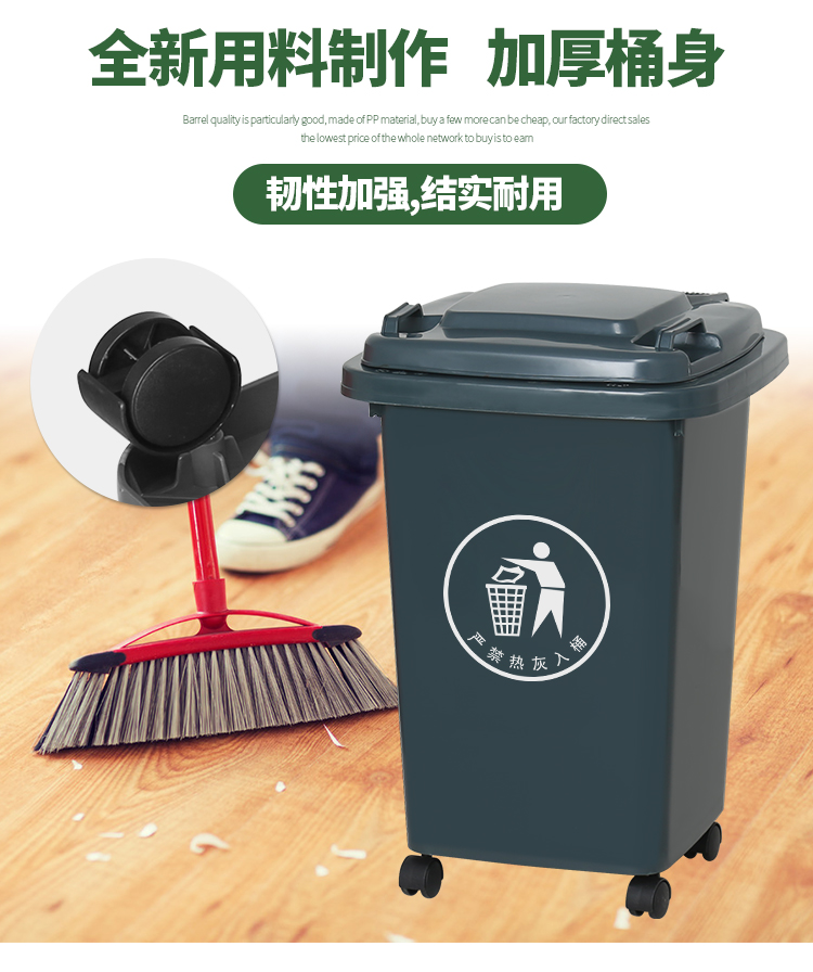 Thùng rác thương mại lớn phục vụ ăn uống phân loại vuông có nắp và bánh xe vệ sinh ngoài trời thùng nhựa gia dụng 50 lít là lựa chọn lý tưởng cho không gian công cộng, sân vườn hoặc khu đô thị. Sản phẩm giúp nâng cao hình ảnh chuyên nghiệp và sạch đẹp cho môi trường sống.