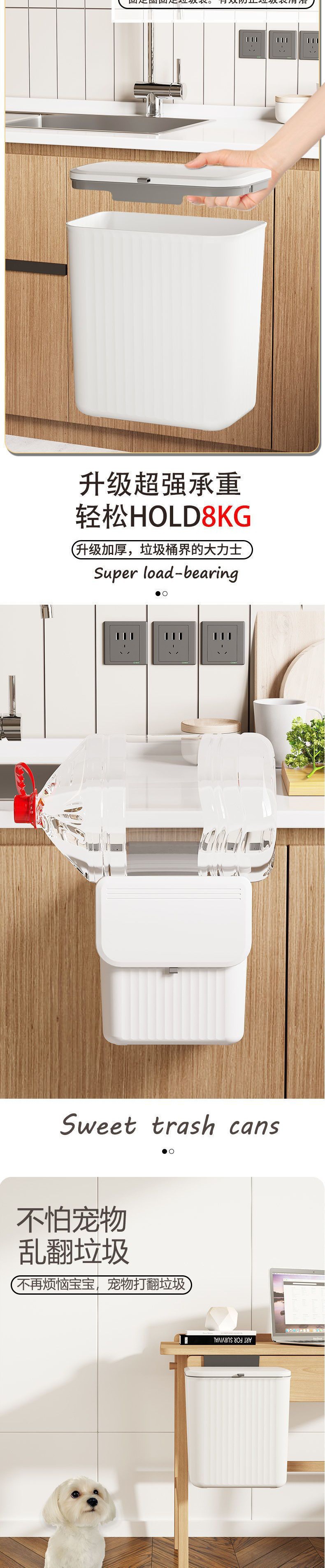Thùng rác treo tường nhà bếp hộ gia đình nắp trượt có nắp đậy nhà vệ sinh treo tường thùng hẹp khử mùi treo giỏ đựng giấy vụn nhà bếp