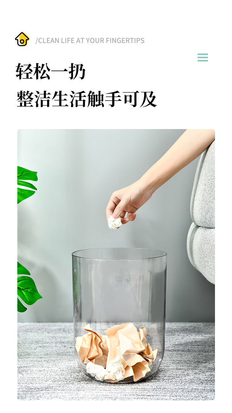 Thùng rác trong suốt dung tích lớn hộ gia đình phòng ngủ phòng khách giỏ giấy không nắp phòng tắm thùng rác ký túc xá thương mại điện tử xuyên biên giới là lựa chọn lý tưởng cho không gian công cộng, sân vườn hoặc khu đô thị. Sản phẩm giúp nâng cao hình ảnh chuyên nghiệp và sạch đẹp cho môi trường sống.