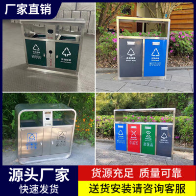 Thùng rác vệ sinh ngoài trời bằng thép không gỉ phân loại hộp vỏ ngoài trời nơi công cộng danh lam thắng cảnh công viên hộp kim loại lớn
