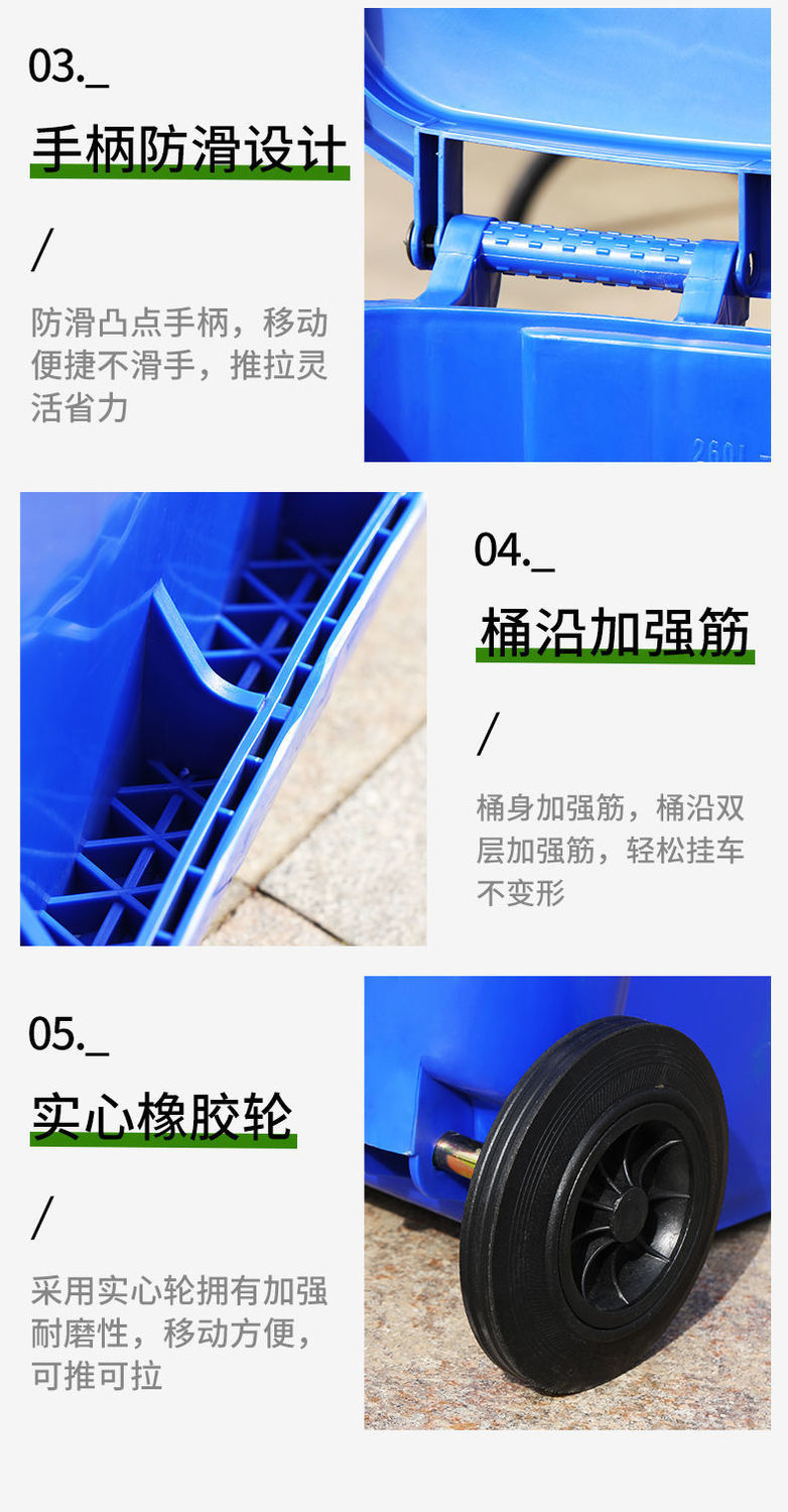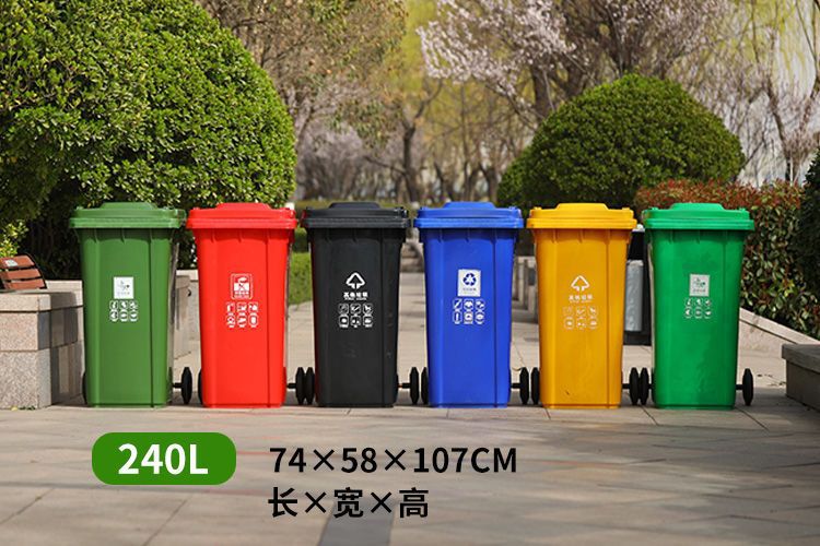 Thùng rác vệ sinh ngoài trời dung tích lớn được phân loại thương mại cộng đồng lớn 240L hộp nhựa có nắp ngoài trời khách sạn