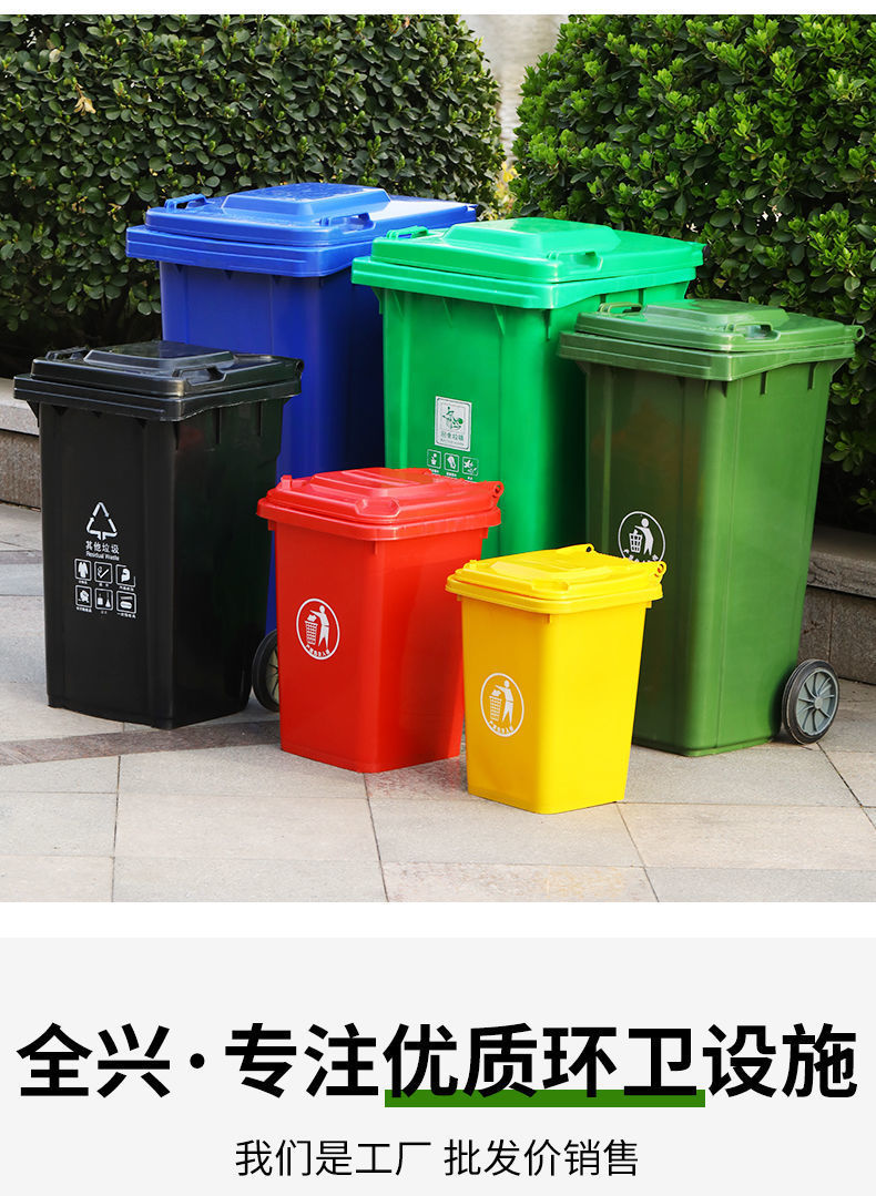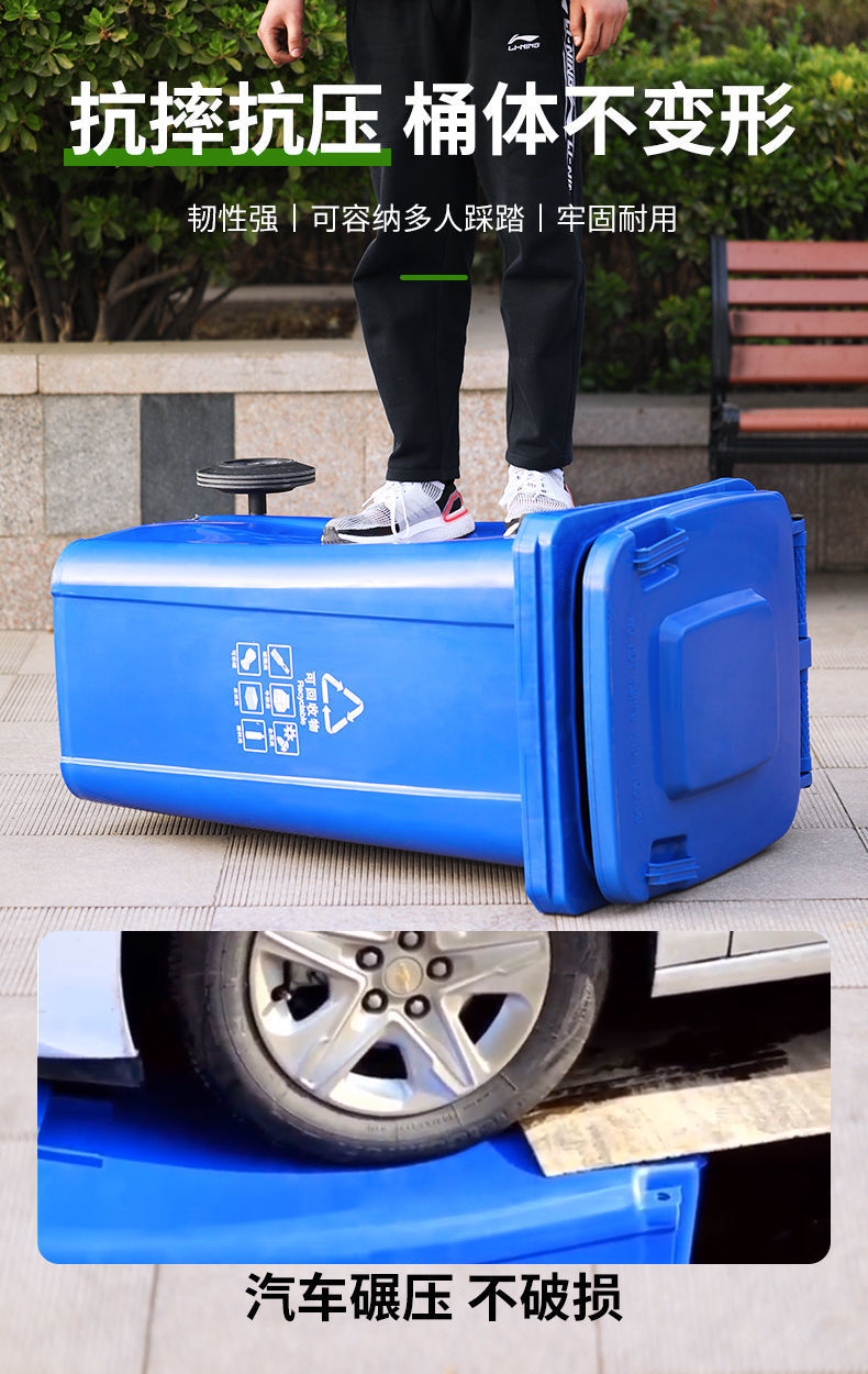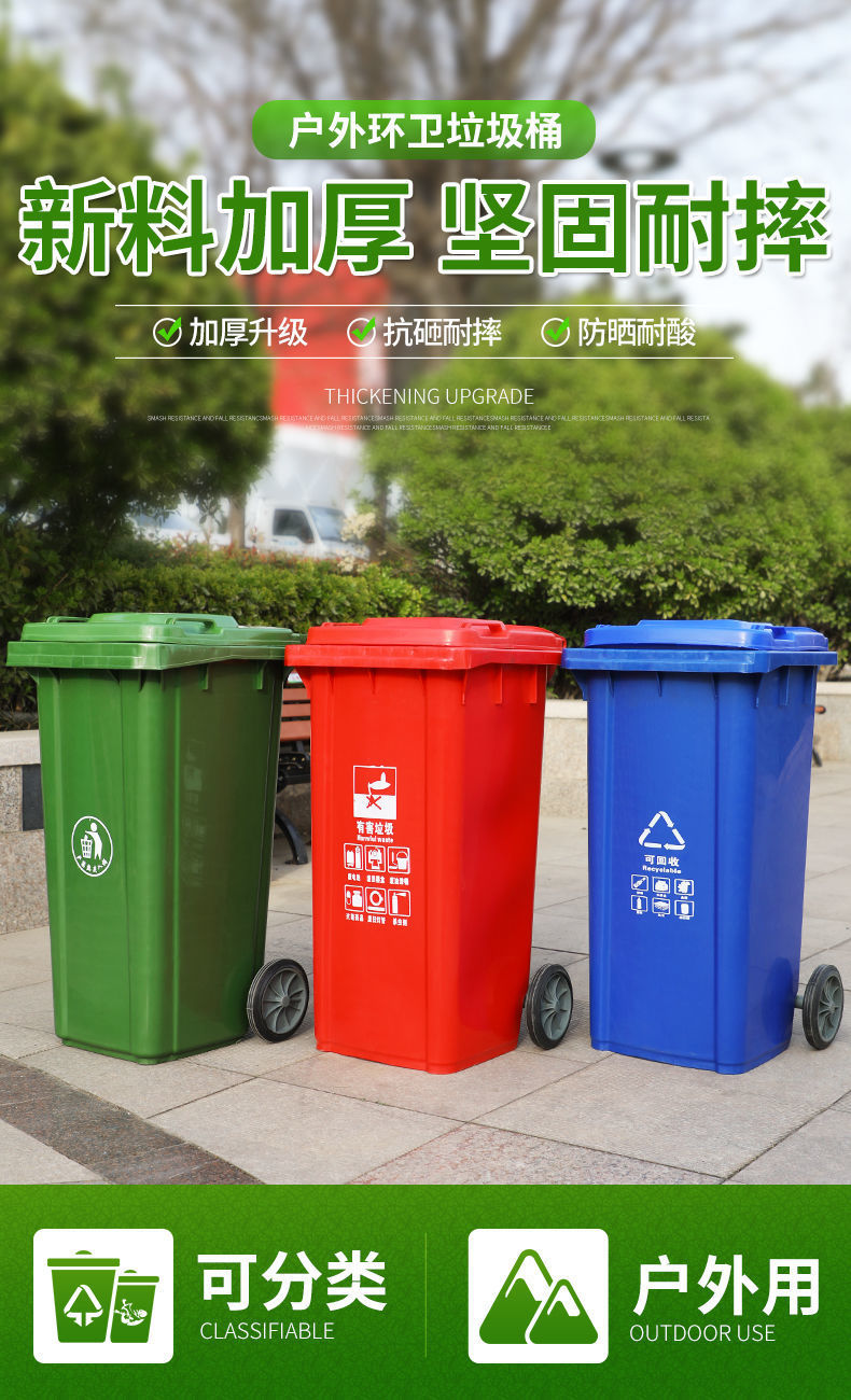 Thùng rác vệ sinh ngoài trời dung tích lớn phân loại cộng đồng thương mại 240 lít hộp nắp dày ngoài trời đường phố lớn là lựa chọn lý tưởng cho không gian công cộng, sân vườn hoặc khu đô thị. Sản phẩm giúp nâng cao hình ảnh chuyên nghiệp và sạch đẹp cho môi trường sống.