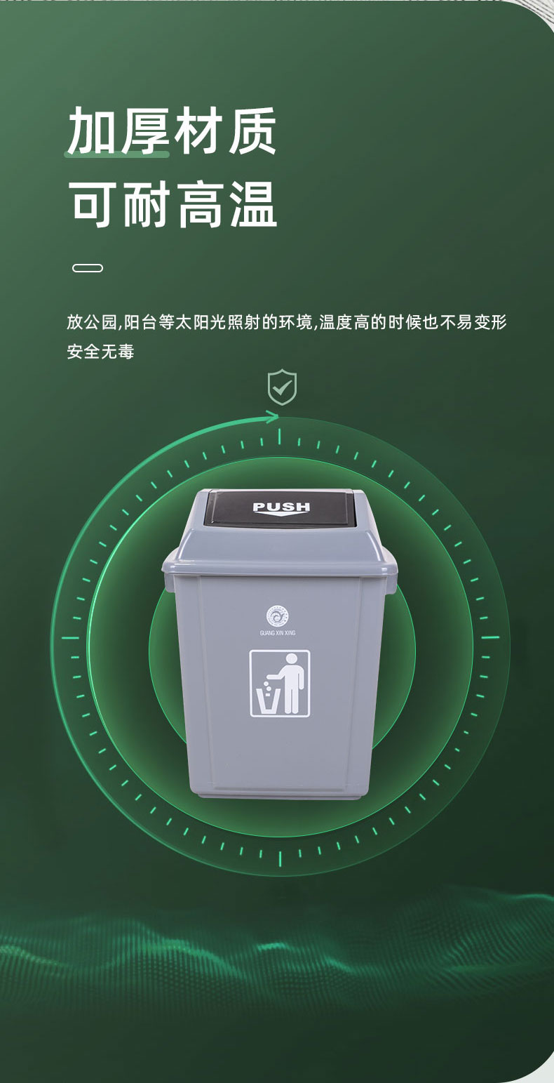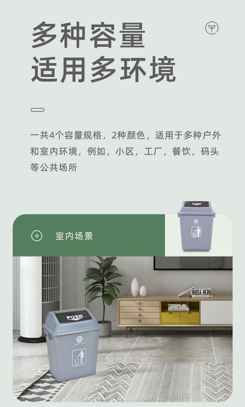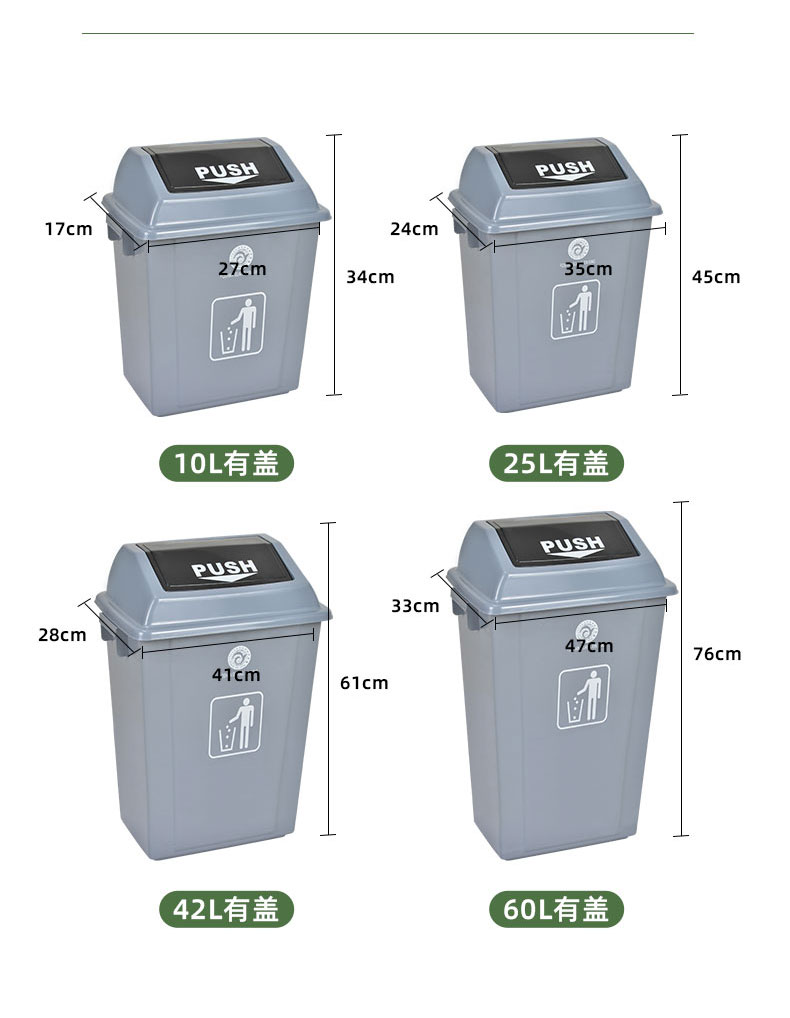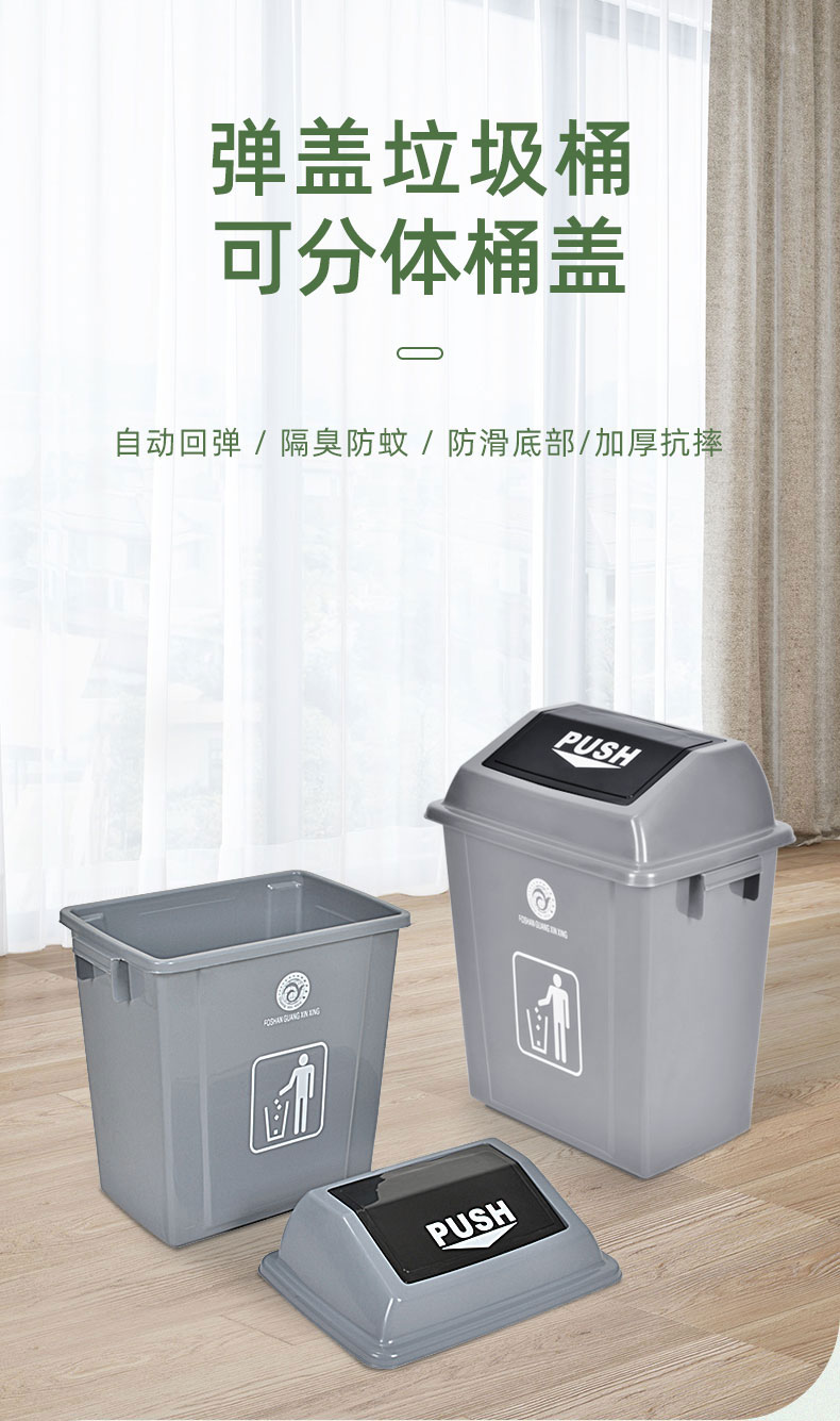Thùng rác vuông dành cho phục vụ ăn uống thương mại sức chứa lớn có nắp bật lên nhà vệ sinh nhà vệ sinh thùng rác cỡ trung ngoài trời dùng trong gia đình
