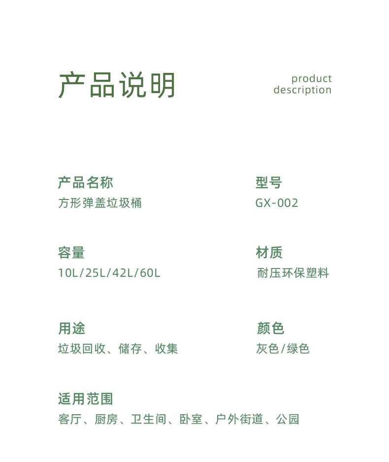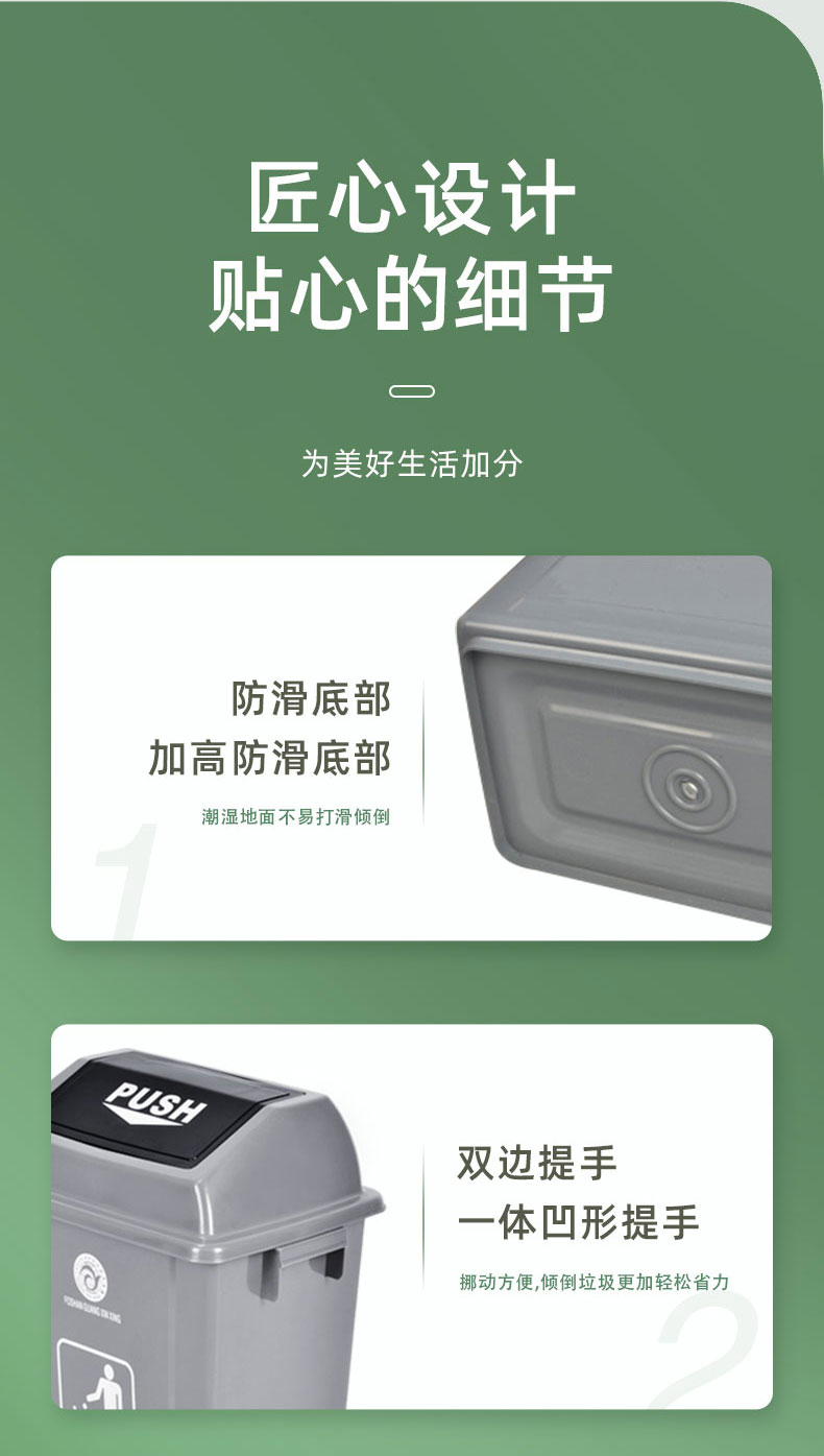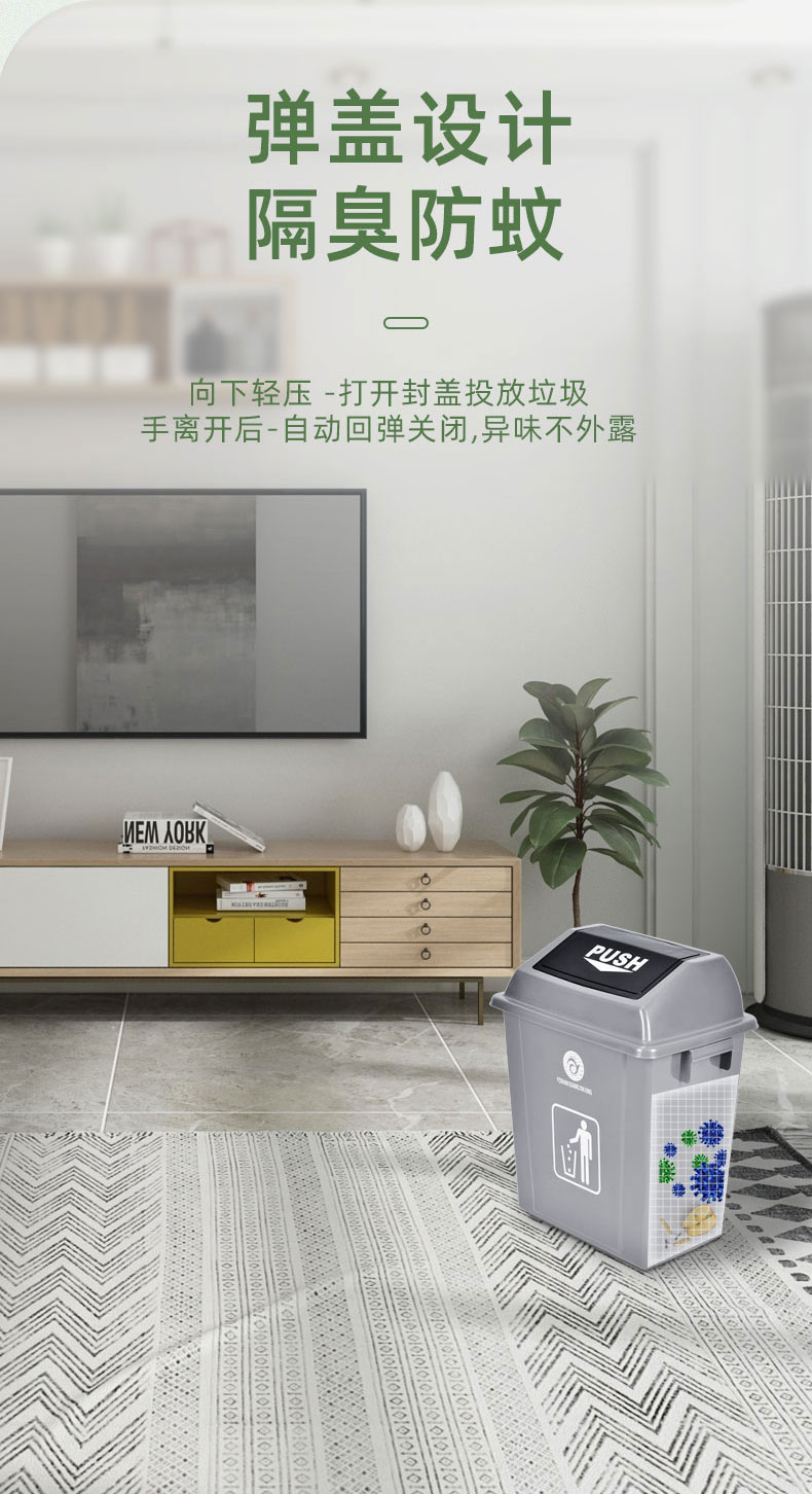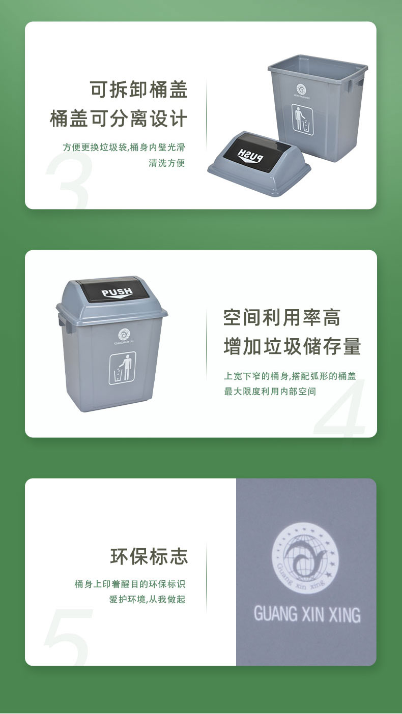 Thùng rác vuông dành cho phục vụ ăn uống thương mại sức chứa lớn có nắp bật lên nhà vệ sinh nhà vệ sinh thùng rác cỡ trung ngoài trời dùng trong gia đình