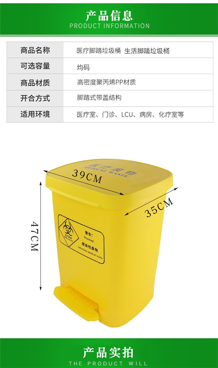 Thùng rác y tế bằng nhựa y tế màu vàng dày đặc có thể tái chế bệnh viện bệnh viện màu vàng hộp tái chế rác thải y tế 40L là lựa chọn lý tưởng cho không gian công cộng, sân vườn hoặc khu đô thị. Sản phẩm giúp nâng cao hình ảnh chuyên nghiệp và sạch đẹp cho môi trường sống.