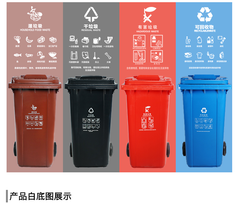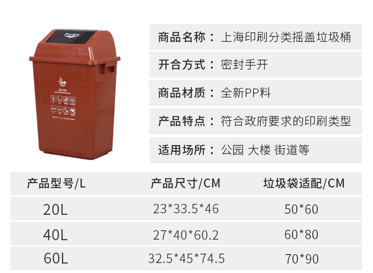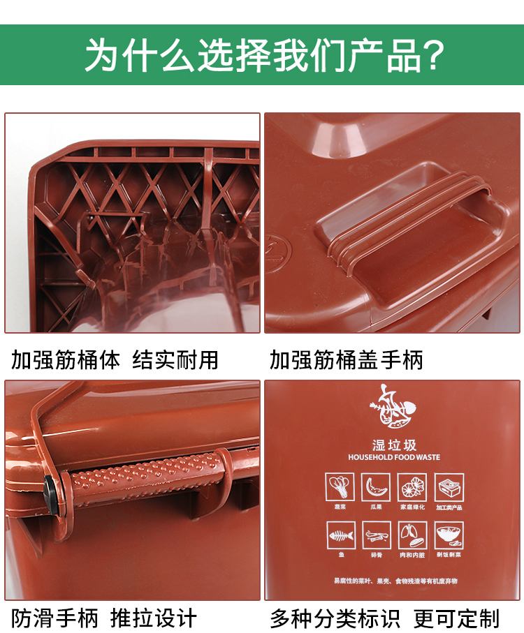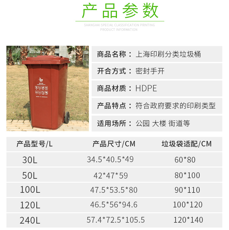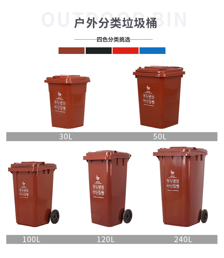 Thượng Hải 240 lít màu nâu thùng rác ngoài trời thùng rác lớn phân loại vệ sinh môi trường khô và ướt tách rác tài sản trường mẫu giáo
