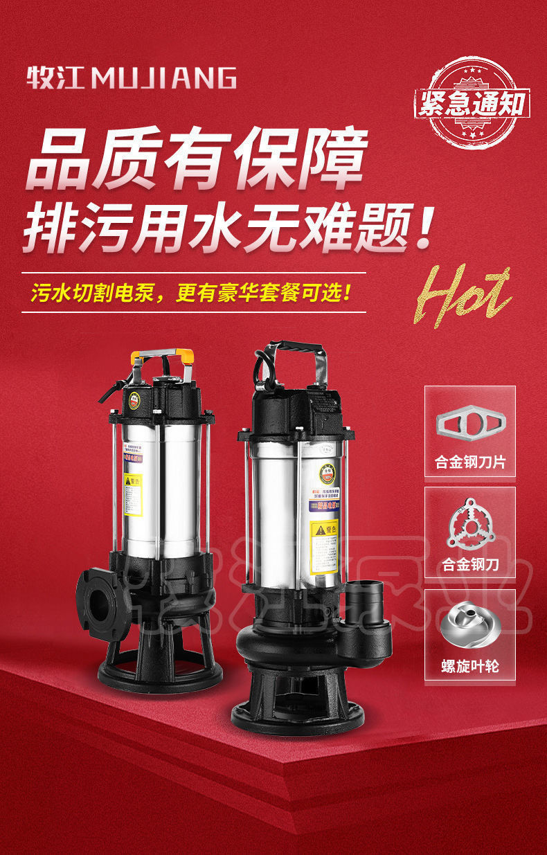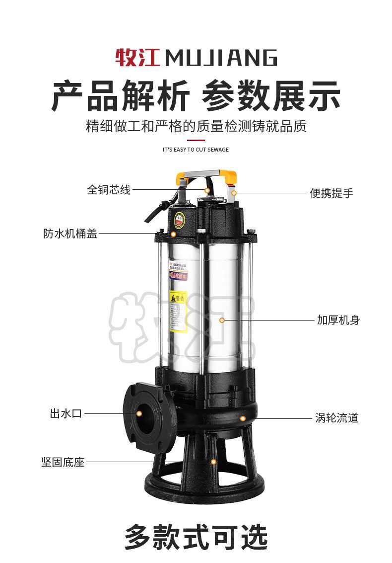 Thượng Hải cắt nước thải bơm tự hoại hộ gia đình 220 máy bơm chìm nước thải bơm phân bón bể biogas đất nông nghiệp thủy lợi