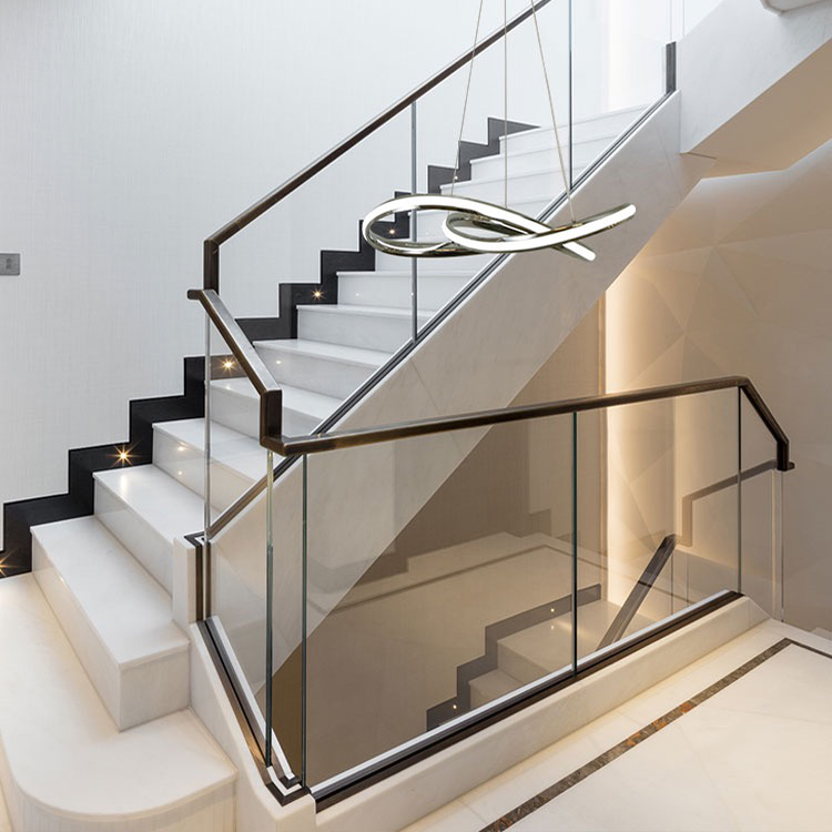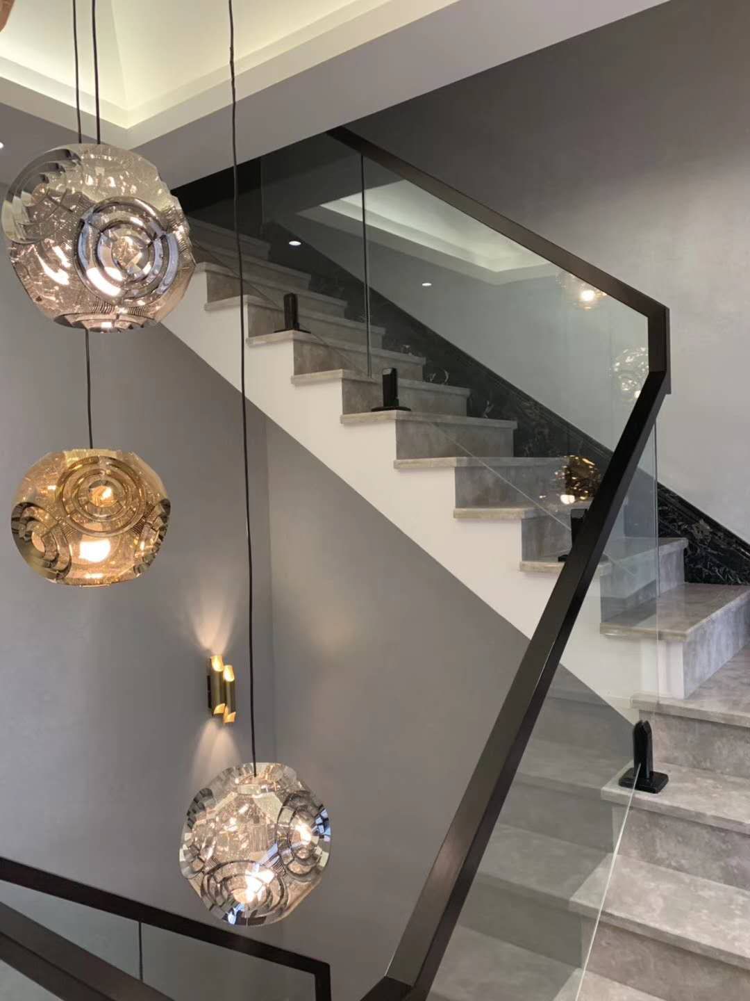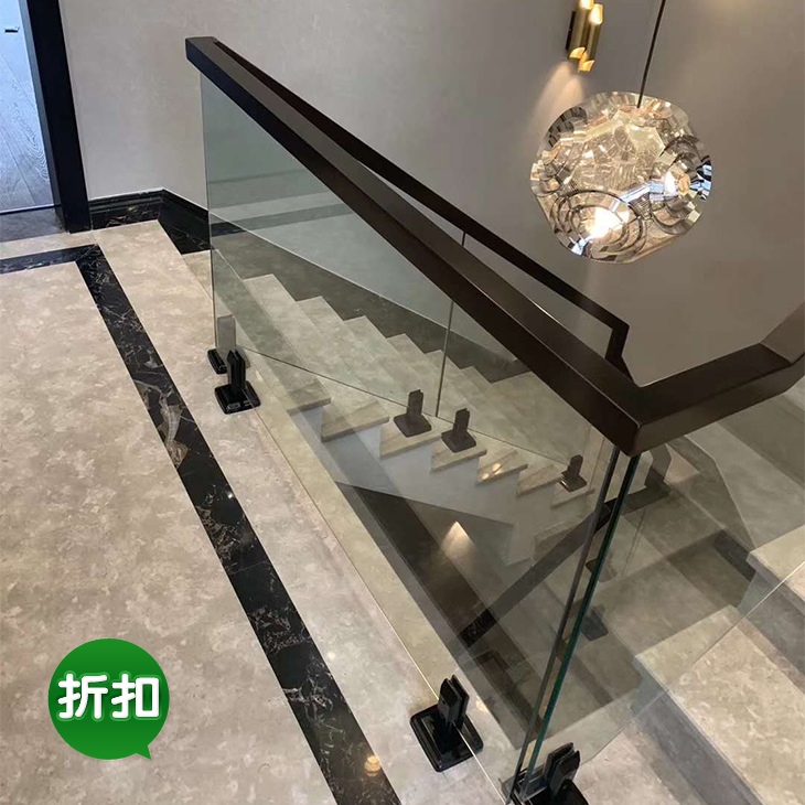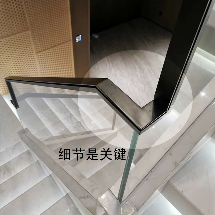 Thượng Hải thép tấm rãnh kính cầu thang hàng rào lan can tùy chỉnh đo lường quốc gia và lắp đặt biệt thự vòng cung bước gỗ rắn