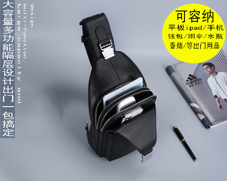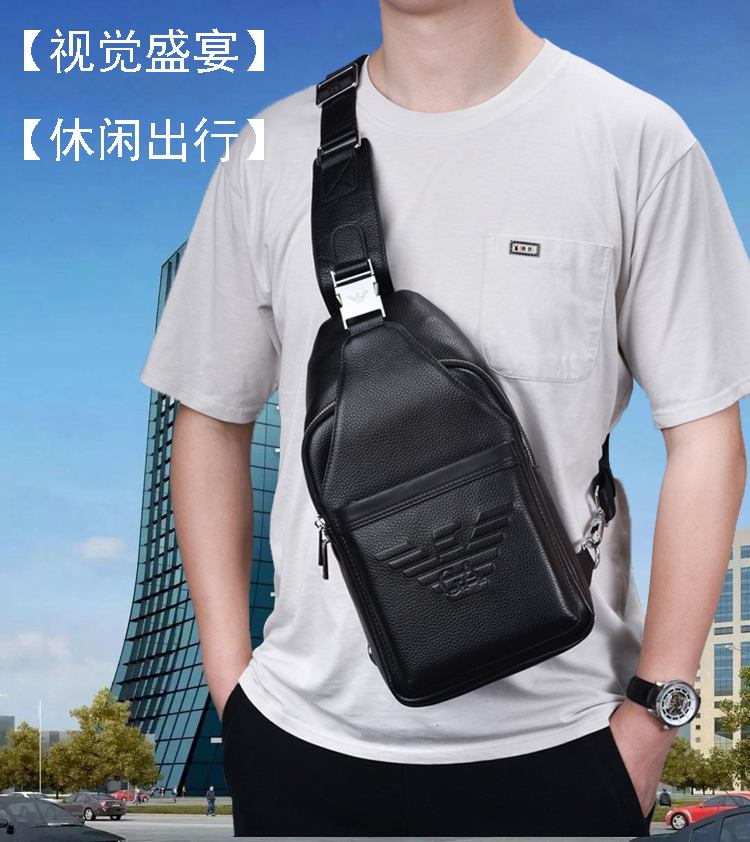 Thương hiệu chính hãng Armani túi đeo ngực của nam túi da đeo vai túi đeo chéo của nam giới túi xách thủy triều thương hiệu ba lô da bò da mềm mùa hè
