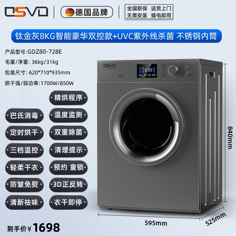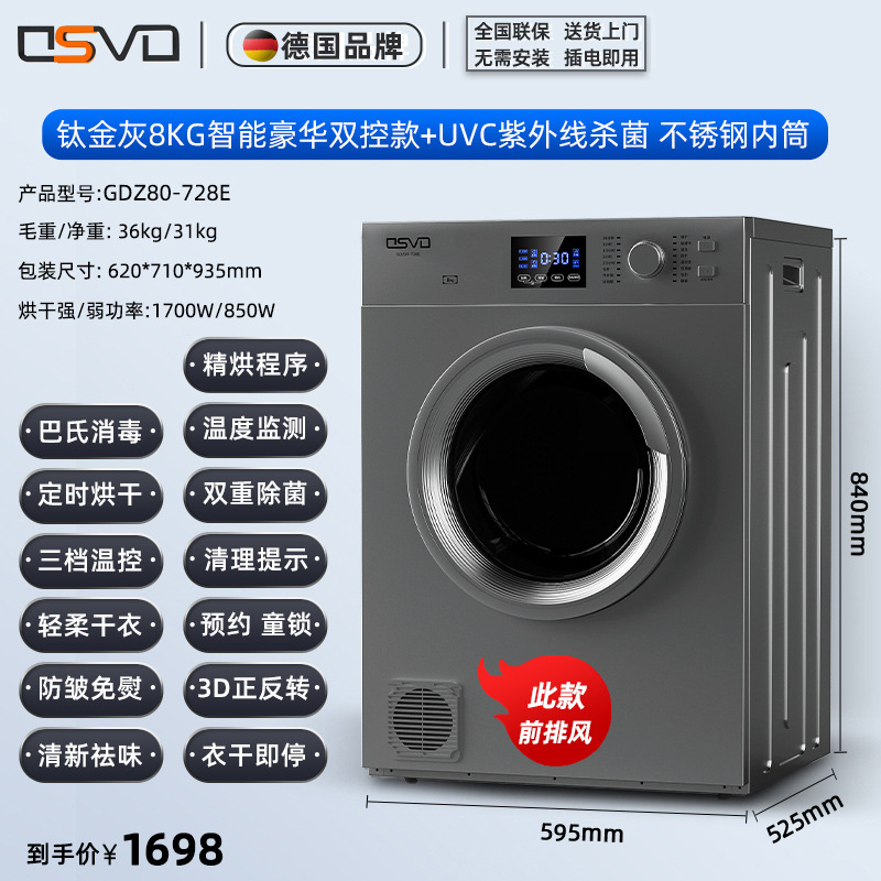 Thương hiệu Đức trống loại máy sấy 8-10kg tại nhà làm khô quần áo có thể làm khô áo khoác bộ bốn món khử trùng