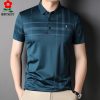 Thương hiệu Montagut Áo thun nam tay ngắn 100% lụa dâu tằm Bố trung niên Doanh nhân Thường có sọc ve áo