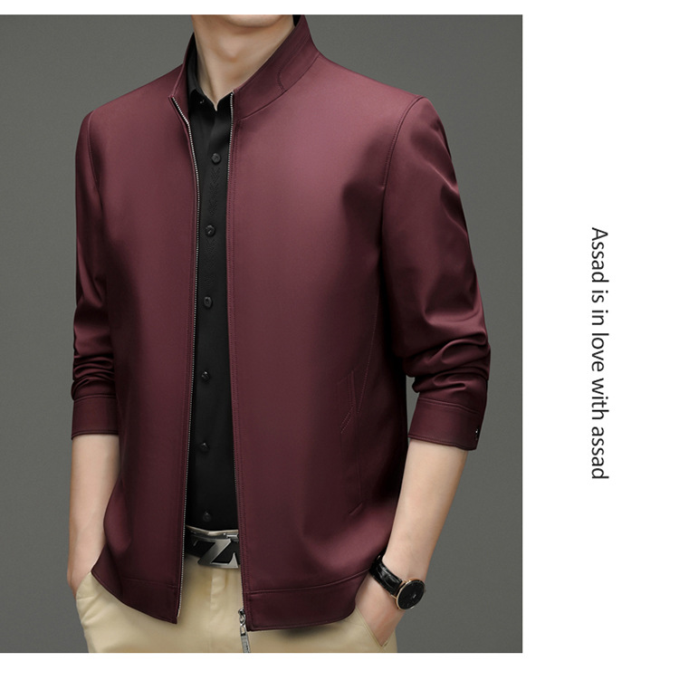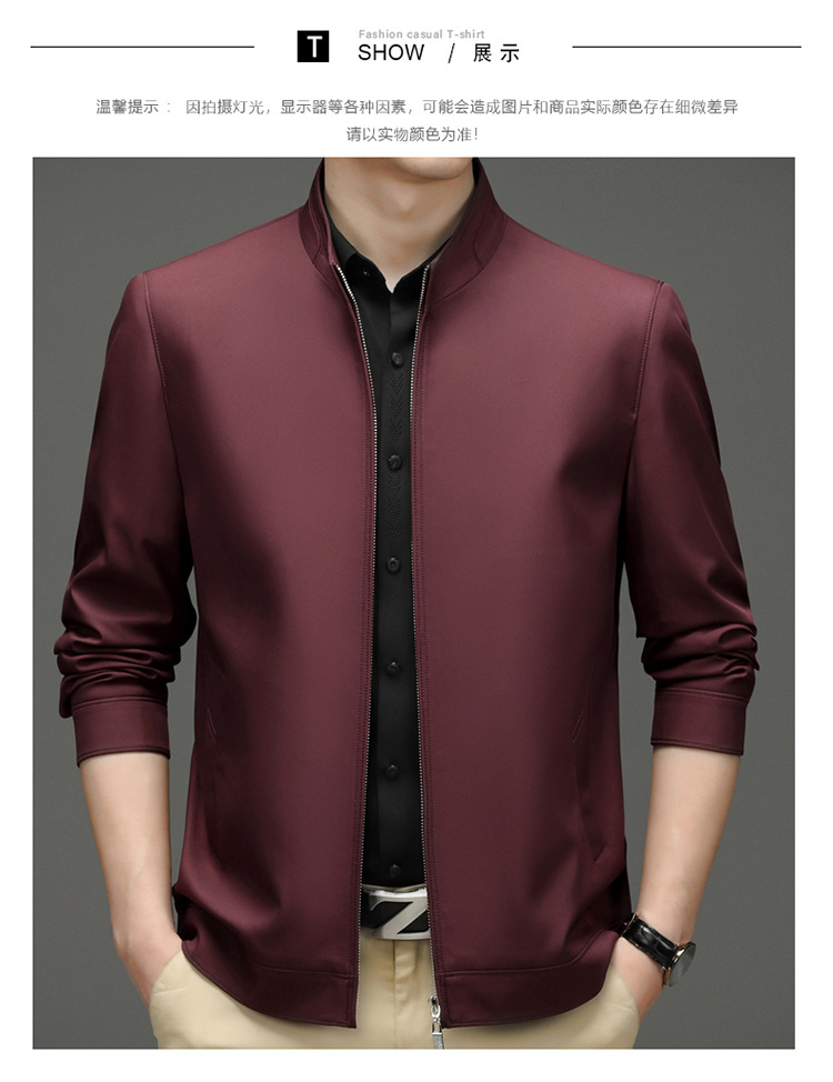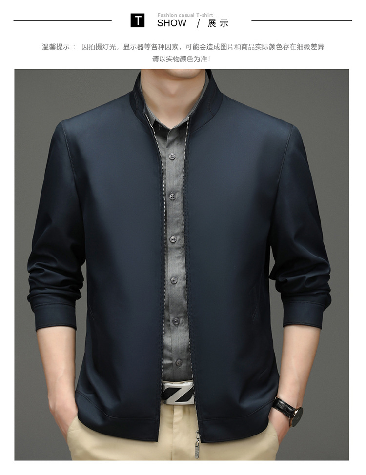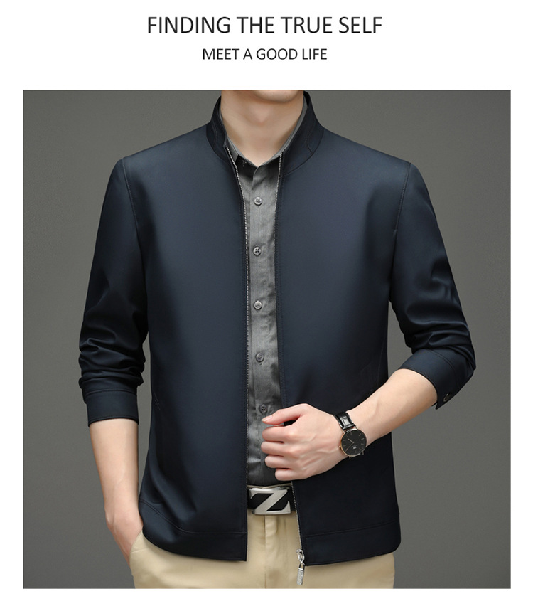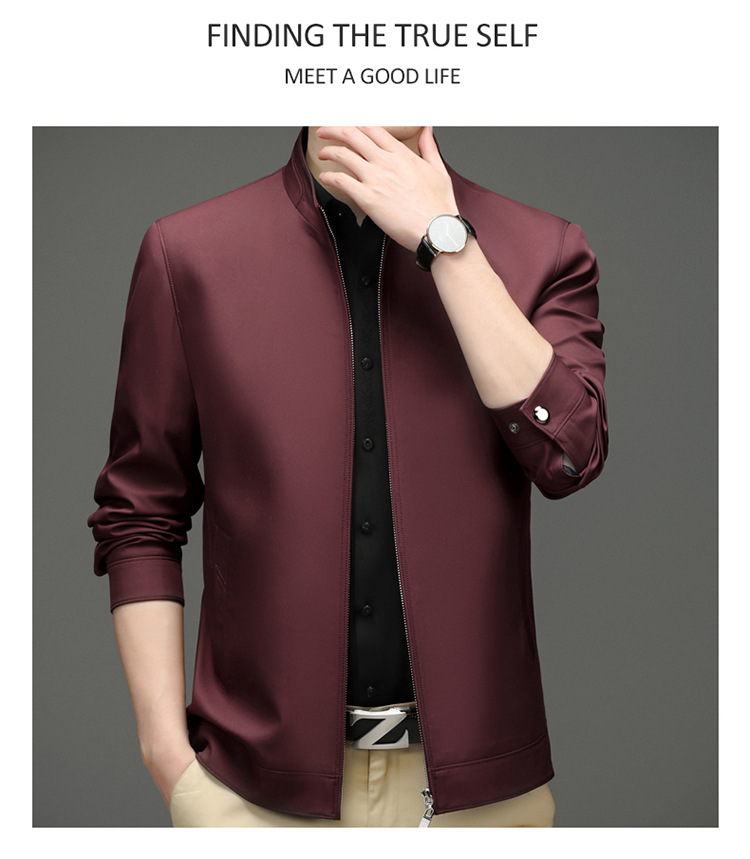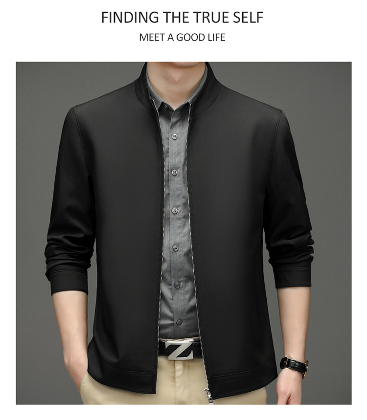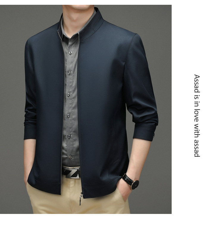 Thương Hiệu Nam Dâu Tằm Áo Khoác Cổ Đứng Xuân Thu Mới Dây Kéo Trung Niên Công Sở Mỏng Không Cần Ủi Áo Khoác