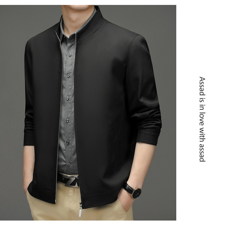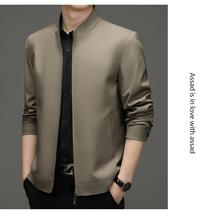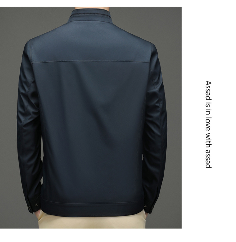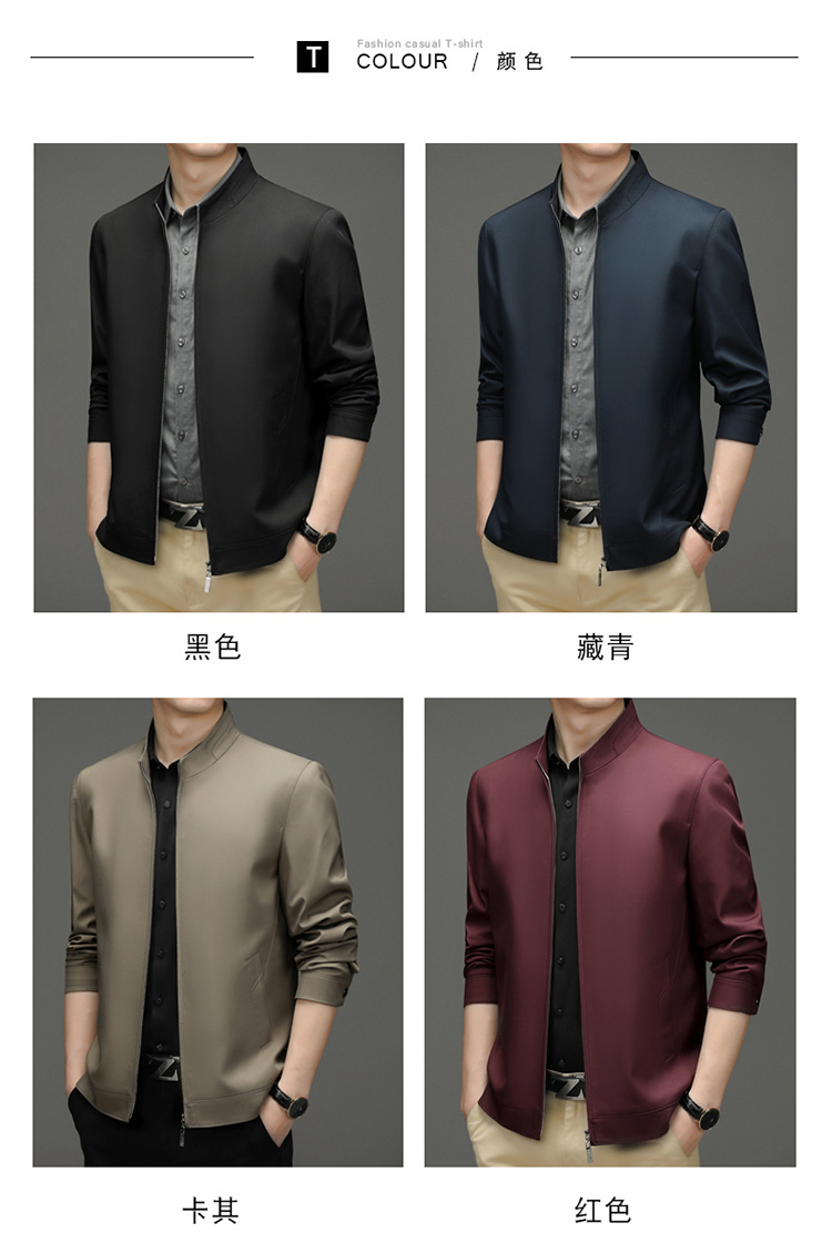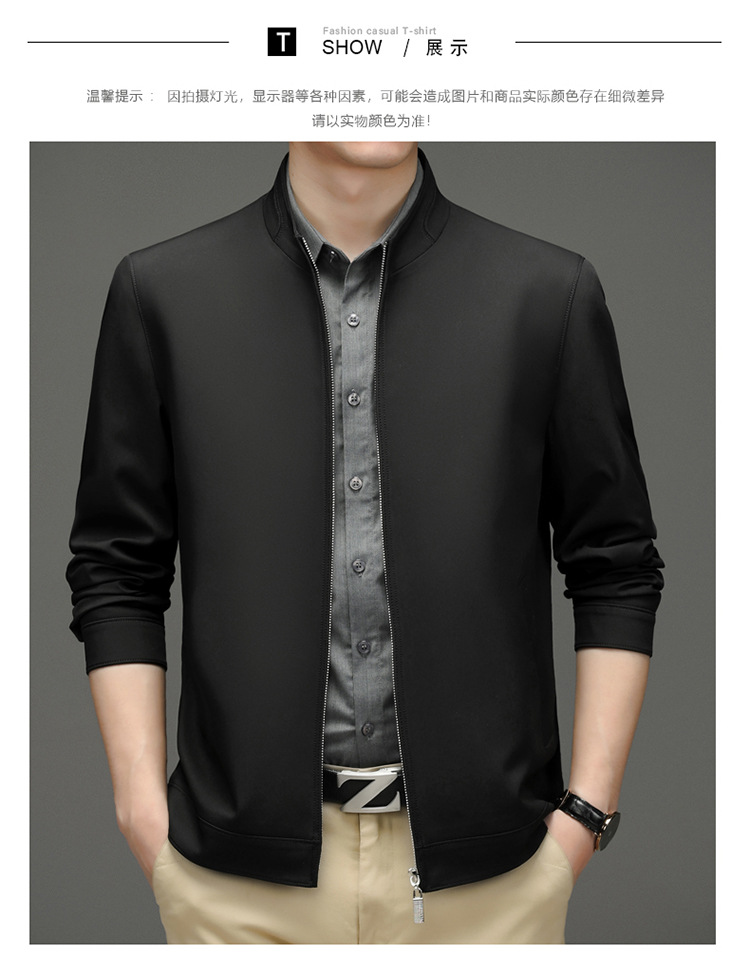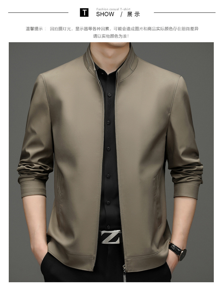 Thương Hiệu Nam Dâu Tằm Áo Khoác Cổ Đứng Xuân Thu Mới Dây Kéo Trung Niên Công Sở Mỏng Không Cần Ủi Áo Khoác