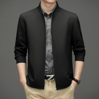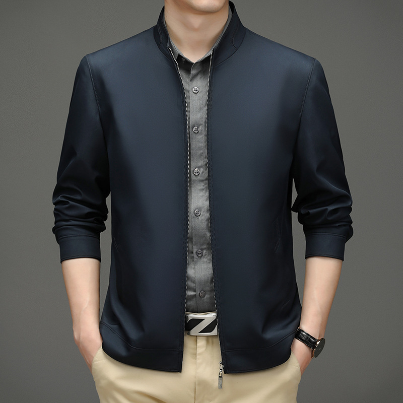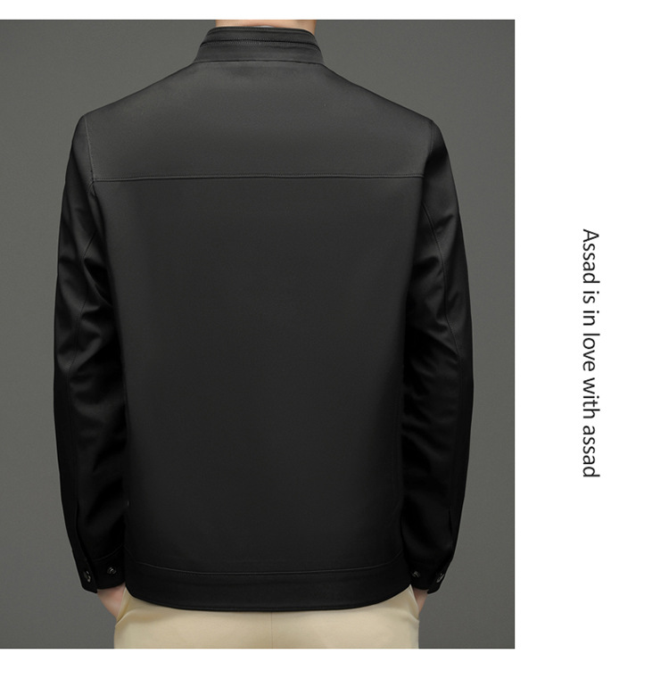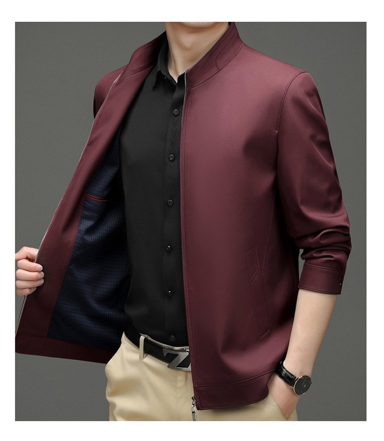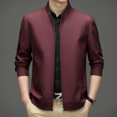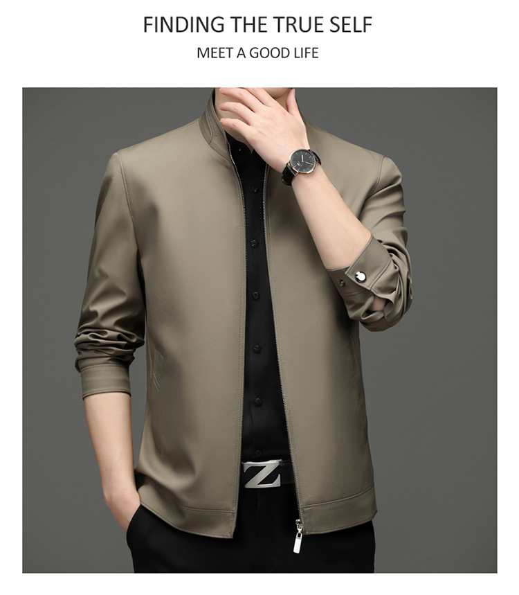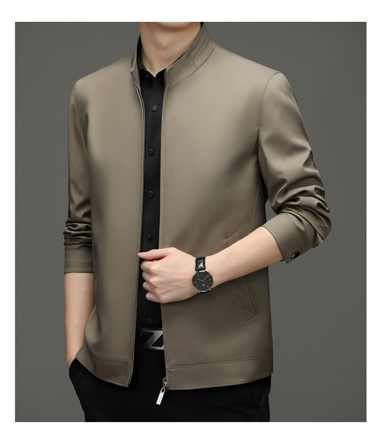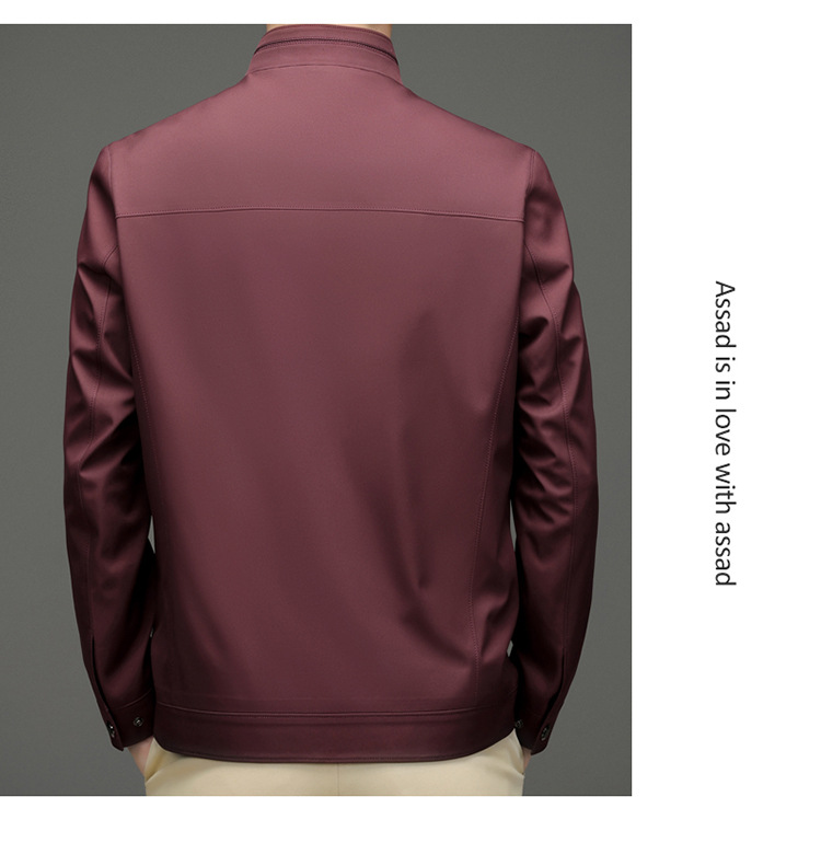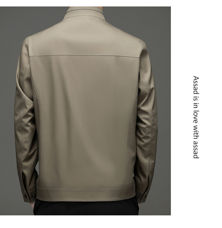 Thương Hiệu Nam Dâu Tằm Áo Khoác Cổ Đứng Xuân Thu Mới Dây Kéo Trung Niên Công Sở Mỏng Không Cần Ủi Áo Khoác