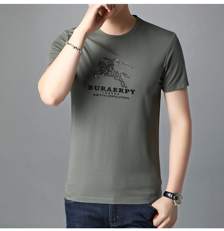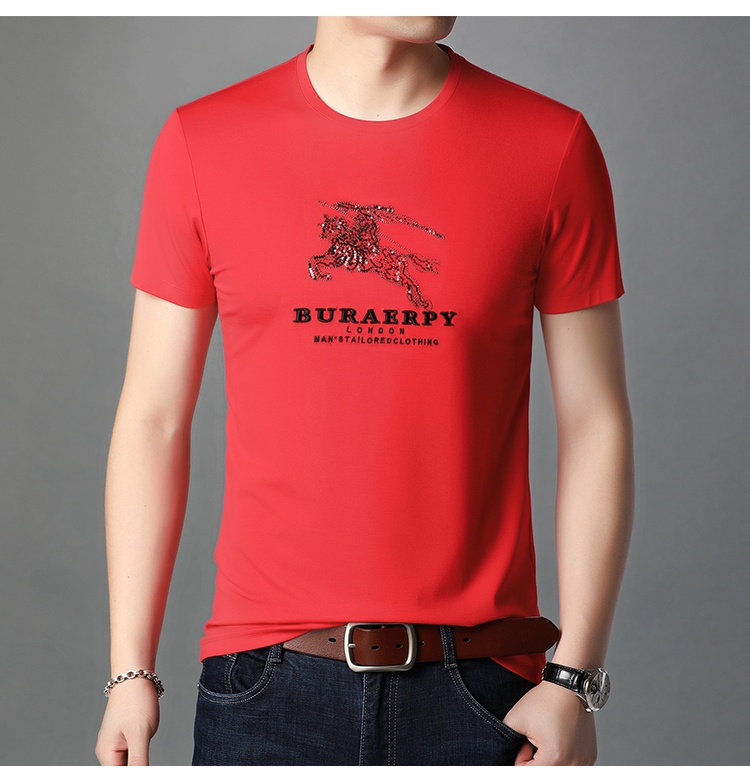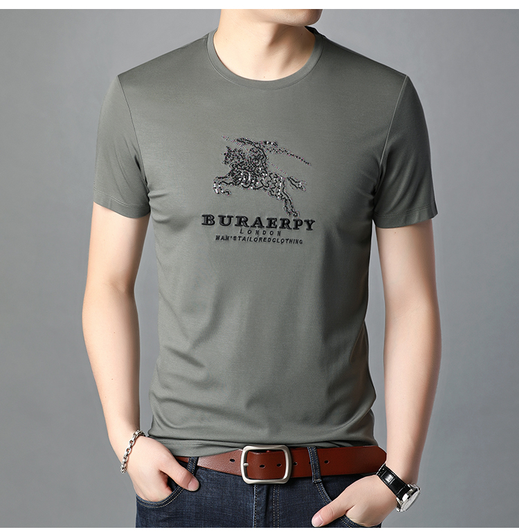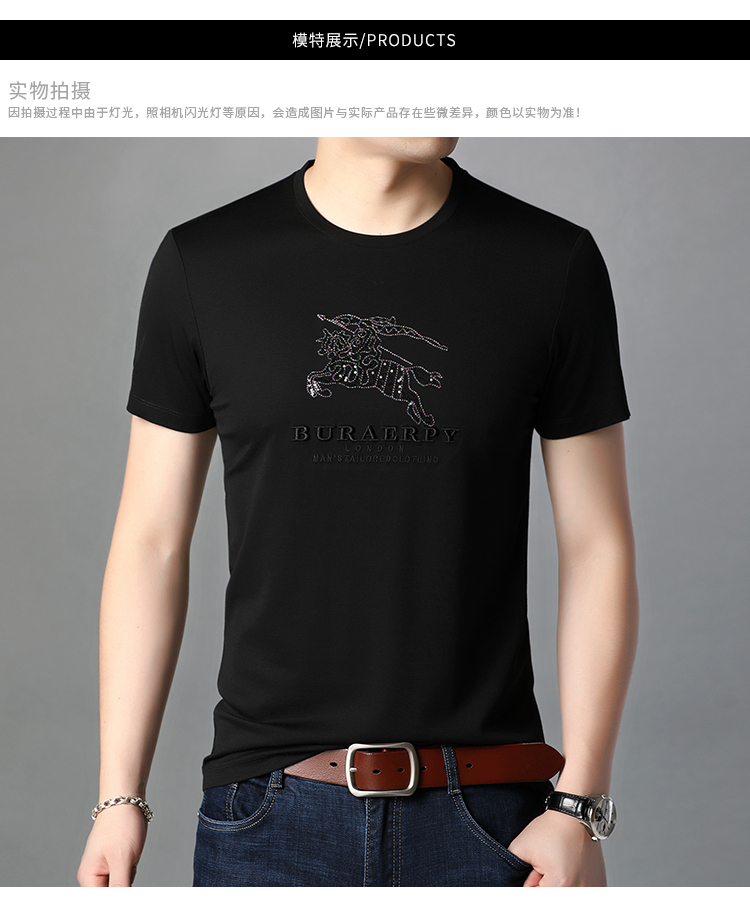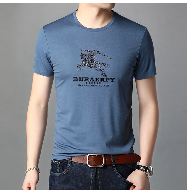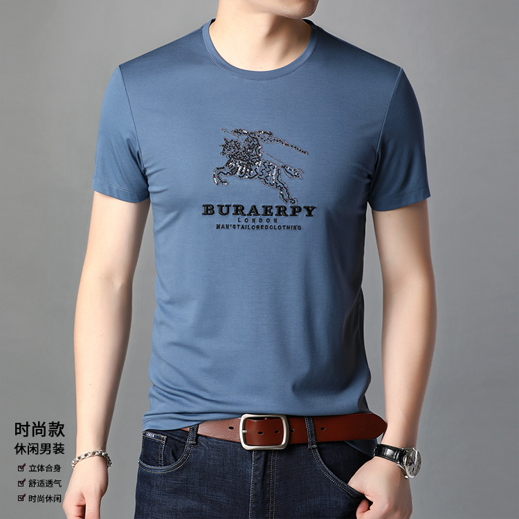 Thương hiệu nổi tiếng quốc tế của nam giới băng lụa ngắn tay áo thun nam mùa hè mỏng phần trung niên áo thun thương hiệu cổ tròn nửa tay thường