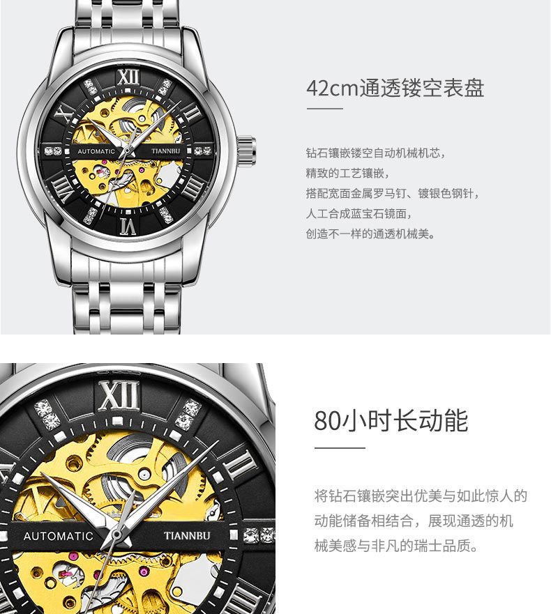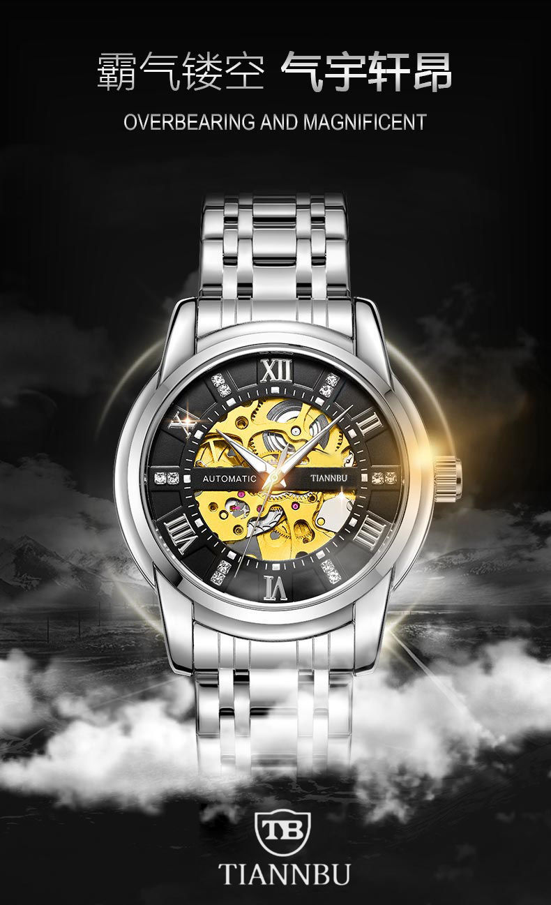 Thương hiệu nổi tiếng Thụy Sĩ đồng hồ cơ tự động nam chống thấm nước dạ quang rỗng tourbillon xu hướng đồng hồ cơ nam