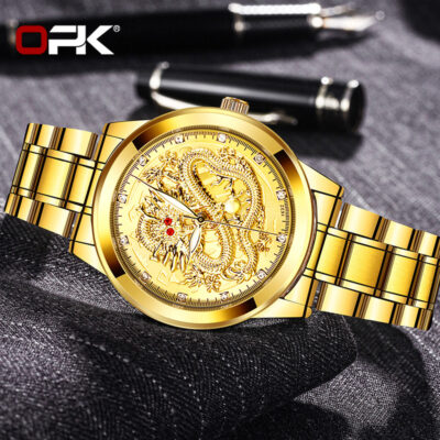 Thương hiệu OPK thay mặt cho đồng hồ nam vàng mới đồng hồ nam vàng đồng hồ đẹp phong cách hot trend đồng hồ dây thép trưởng thành đồng hồ rồng