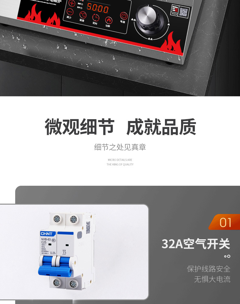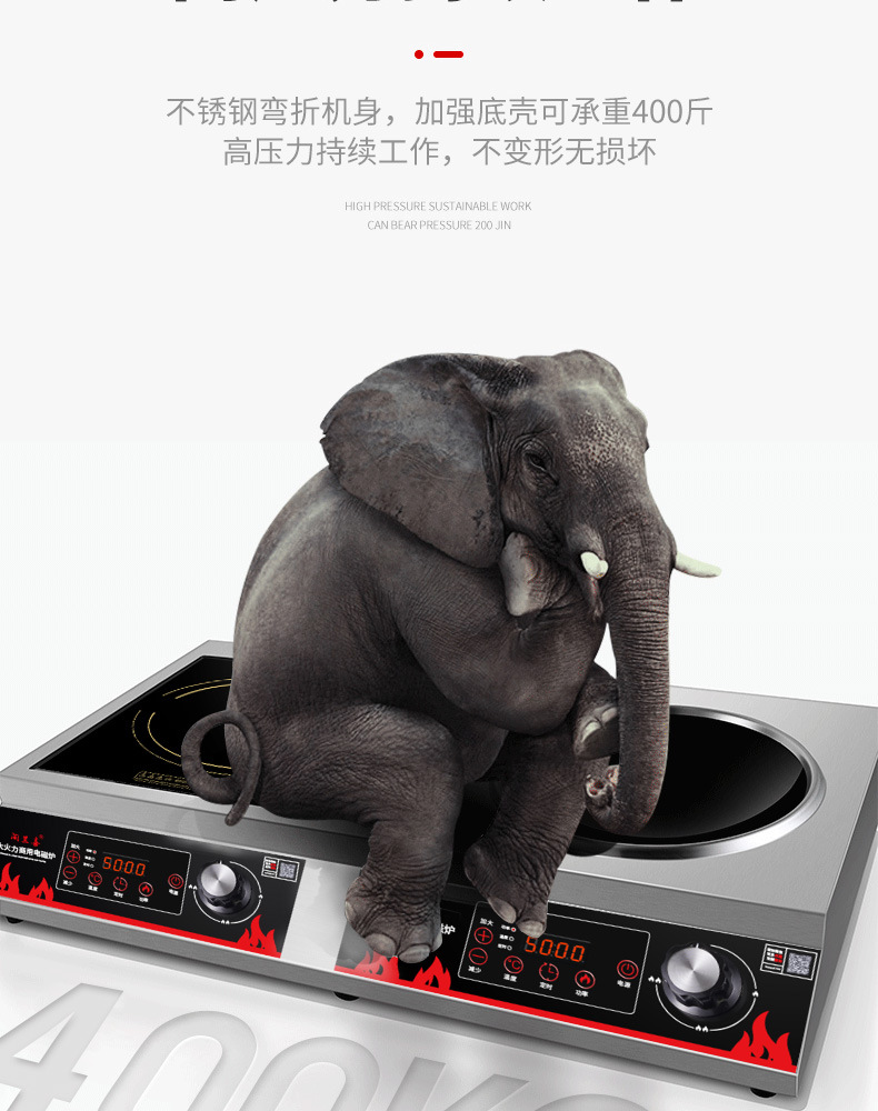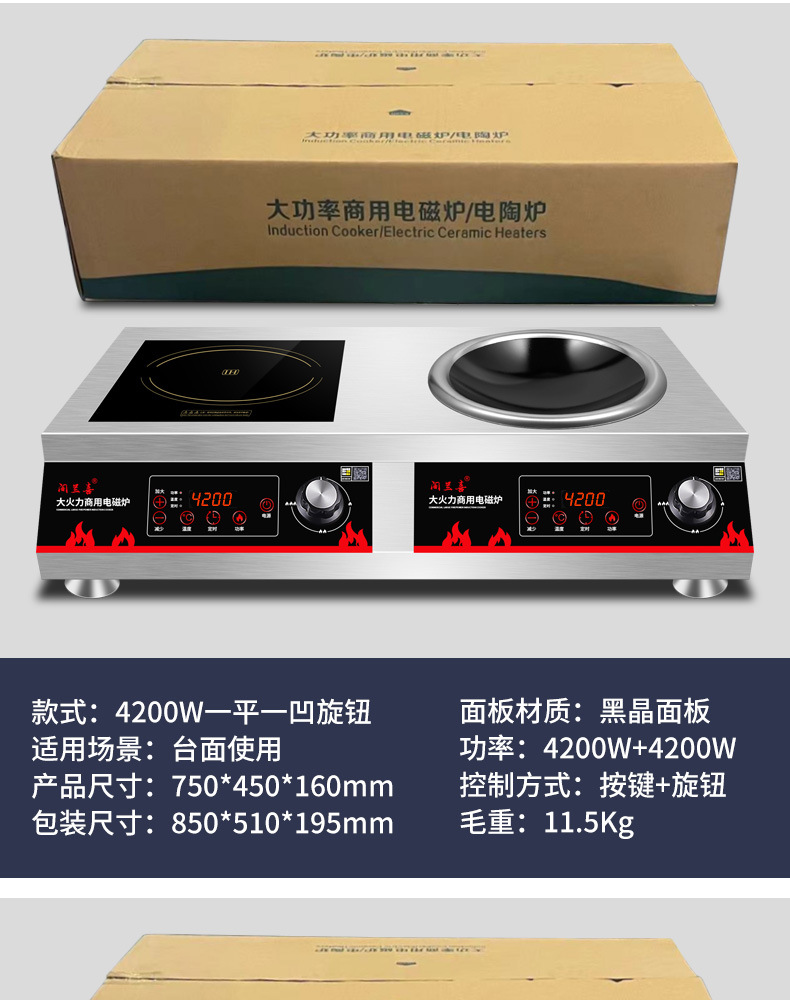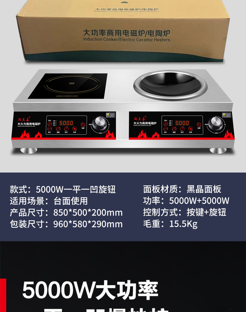 Thương Mại Cảm Ứng Bếp Đôi Cao Cấp 5000W Lõm Rán Trường Học Căng Tin 3500W Phẳng Lửa Chảo