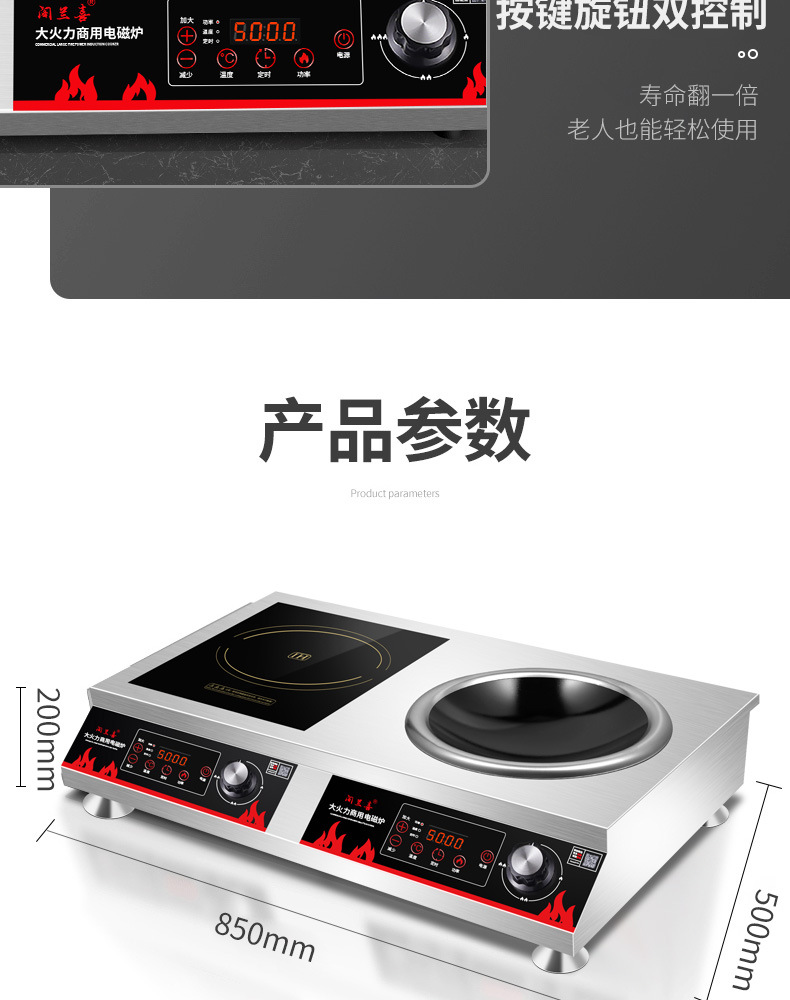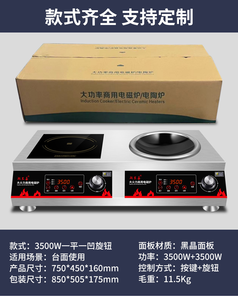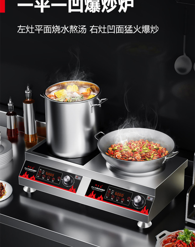 Thương Mại Cảm Ứng Bếp Đôi Cao Cấp 5000W Lõm Rán Trường Học Căng Tin 3500W Phẳng Lửa Chảo