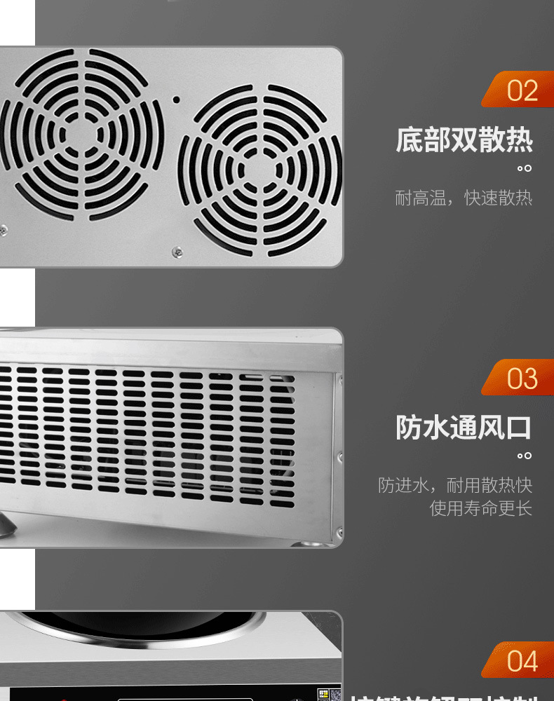 Chất liệu của toàn bộ máy: thép không gỉ Loại: Bếp lò Thương hiệu: Gelanxi Đầu tư Khởi nghiệp: Khởi nghiệp Dịch vụ hậu mãi: Bảo hành một năm Đối tượng áp dụng: Thực phẩm Phạm vi ứng dụng: Nhà hàng/Nhà hàng/Trường học Bếp điện từ hai núm lõm 3500W/một mặt phẳng và 4200W Bếp điện từ một núm lõm/Bếp điện từ hai núm phẳng 4200W/Bếp điện từ hai núm lõm 4200W/Bếp điện từ hai núm lõm 5000W220V/Bếp từ cảm ứng hai núm phẳng 5000W220V/Bếp điện từ hai núm lõm 5000W220V/5000W380V một phẳng và một lõm Bếp điện từ núm vặn /Bếp điện từ hai núm phẳng 5000W380V/Bếp điện từ hai núm lõm 5000W380V/Bếp điện từ hai núm lõm 5000W380V