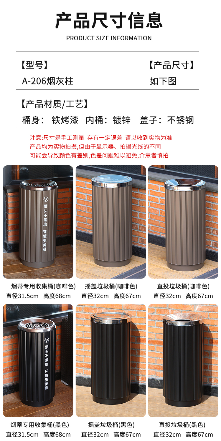 Phân loại màu sắc: Màu đen lớn, mô hình dập tắt thuốc lá, màu đen lớn (thùng rác + gạt tàn), màu cà phê lớn, mô hình dập tắt thuốc lá, màu cà phê lớn (thùng rác + gạt tàn), thép cát lớn, chỉ mô hình dập tắt thuốc lá, cát lớn thép (Thùng rác + gạt tàn) Loại nhỏ màu đen, chỉ có mẫu dập tắt thuốc lá Màu đen nhỏ (thùng rác + gạt tàn) Màu cà phê nhỏ Chỉ có mẫu dập tắt thuốc lá Màu nâu nhỏ (thùng rác + gạt tàn) Đen vuông lớn (gạt tàn + gạt tàn) Màu cà phê vuông lớn (gạt tàn + thùng rác) Vuông nhỏ màu đen (gạt tàn + thùng rác) Vuông nhỏ màu cà phê (gạt tàn + thùng rác) Trắng (gạt tàn + thùng rác) Chỉ dập thuốc lá màu trắng có nắp xoay màu đen Thùng rác màu nâu, nắp xoay, màu đen, thùng rác ném trực tiếp, màu cà phê, thùng rác ném trực tiếp