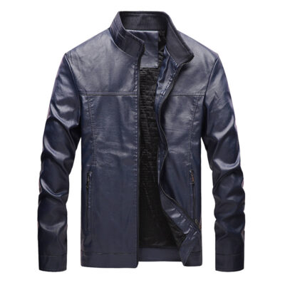 Thương mại điện tử Xuất khẩu Amazon mùa xuân và mùa thu nam cổ đứng màu trơn áo khoác da pu xe máy áo khoác da nam cỡ lớn