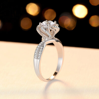 Thương mại điện tử xuyên biên giới phong cách nóng bỏng sáu móng vuốt một cara tay cầm hoa moissanite nhẫn nữ đài phun nước hoa hồng s925 nhẫn kim cương carbon cao