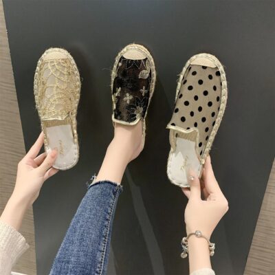 Thương mại nước ngoài cỡ lớn dép đi trong nhà ngư dân áo khoác ngoài mùa hè của phụ nữ thời trang phiên bản Hàn Quốc Lưới Bao Đầu nửa đáy phẳng kéo giày ngư dân xuyên biên giới