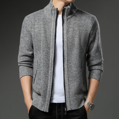 Thương mại nước ngoài dệt kim áo khoác nam mùa thu đông xu hướng tất cả các trận đấu đồng màu dày cổ đứng áo len cardigan áo khoác bán buôn