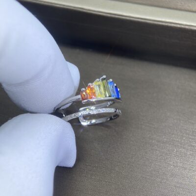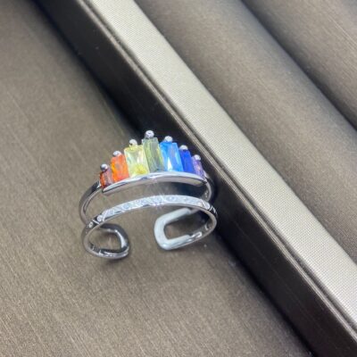 Thương mại nước ngoài mới của Châu Âu và Mỹ hai lớp vương miện kim cương nhẫn cầu vồng mở nhẫn bạc 925 zircon đuôi nhẫn trang sức