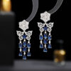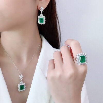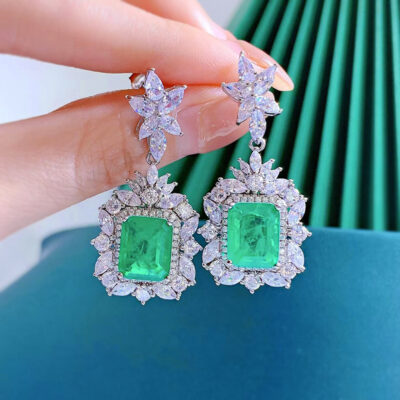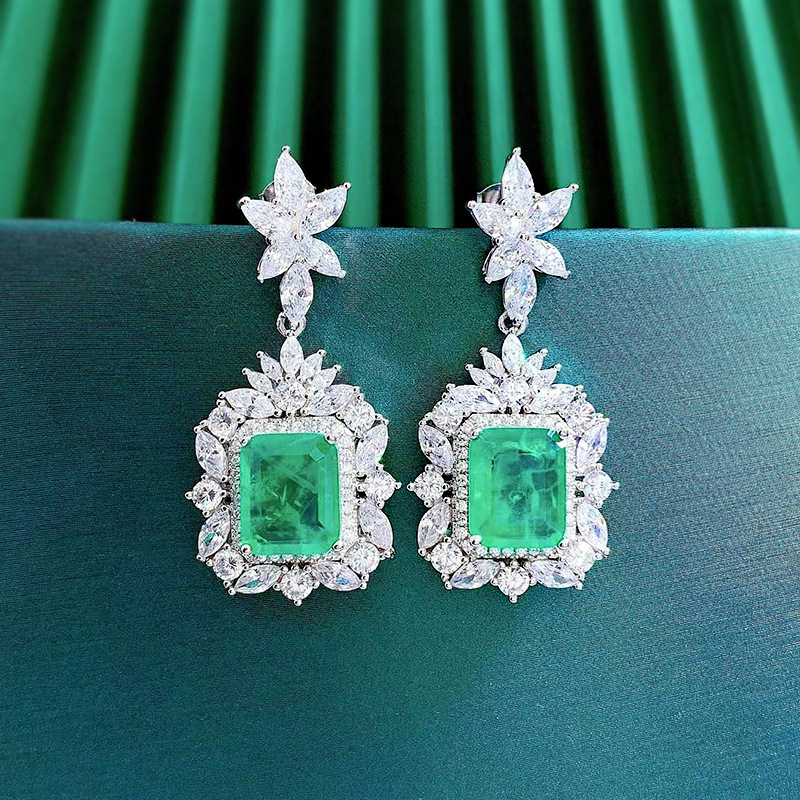 Thương mại nước ngoài mới phong cách châu Âu và Mỹ S925 bạc ngọc lục bảo bông tai hình chữ nhật bông tai hoa tính khí micro-dát bông tai zircon