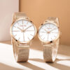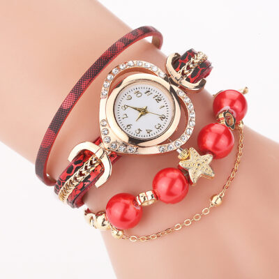 Thương mại nước ngoài nóng bán đồng hồ đeo tay nữ đào trái tim khảm ngọc trai rhinestone vòng tròn đồng hồ sinh viên phiên bản Hàn Quốc xuất xưởng tại chỗ