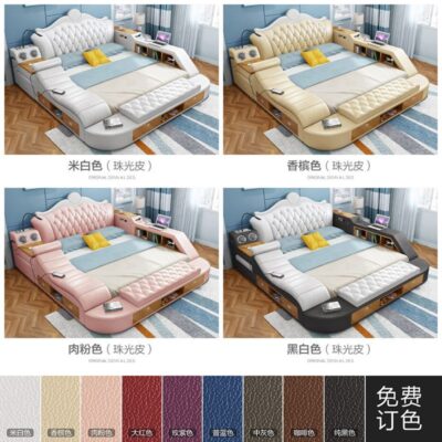 Thương mại nước ngoài phong cách Châu Âu tất nam da giường phòng ngủ massage đa năng lưu trữ giường đôi 1.8m giường da