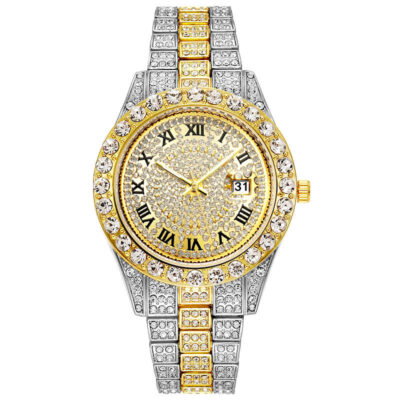 Thương mại nước ngoài thời trang mới kim cương đầy đủ đồng hồ nam nước ma đầy sao lịch đồng hồ thạch anh dây thép nam màu vàng hàng hiệu suất