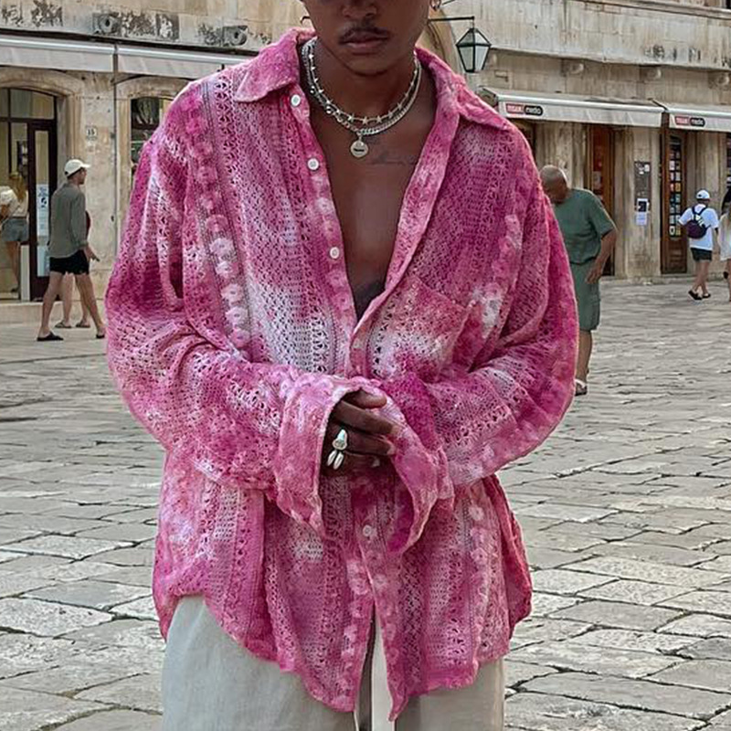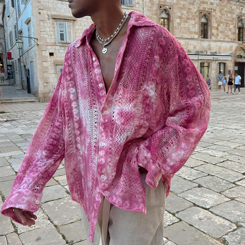 Thường Ngày Drap Rỗng Phối Ren Áo Sơ Mi Nam Ga Châu Âu Nam Mùa Hè Xu Hướng Thời Trang Cao Cấp