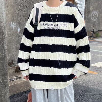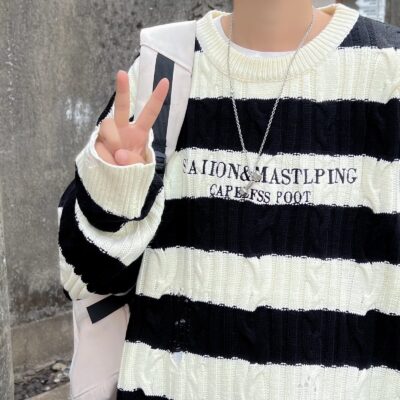 Thủy triều thương hiệu giản dị Mỹ retro thư sọc áo len nam và nữ quốc gia xu hướng đường phố đại học phong cách cặp đôi mặc áo len