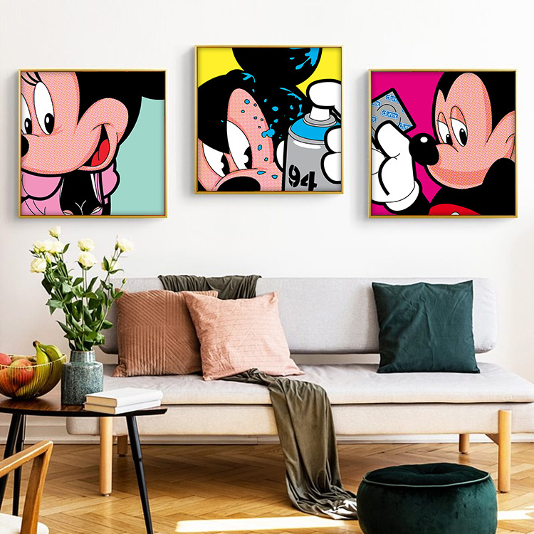 Thủy triều thương hiệu treo tranh xu hướng giả mạo tranh nghệ thuật Vịt Donald Mickey pop tranh trang trí phong cách thay thế phòng tắm bức tranh tường sáng tạo