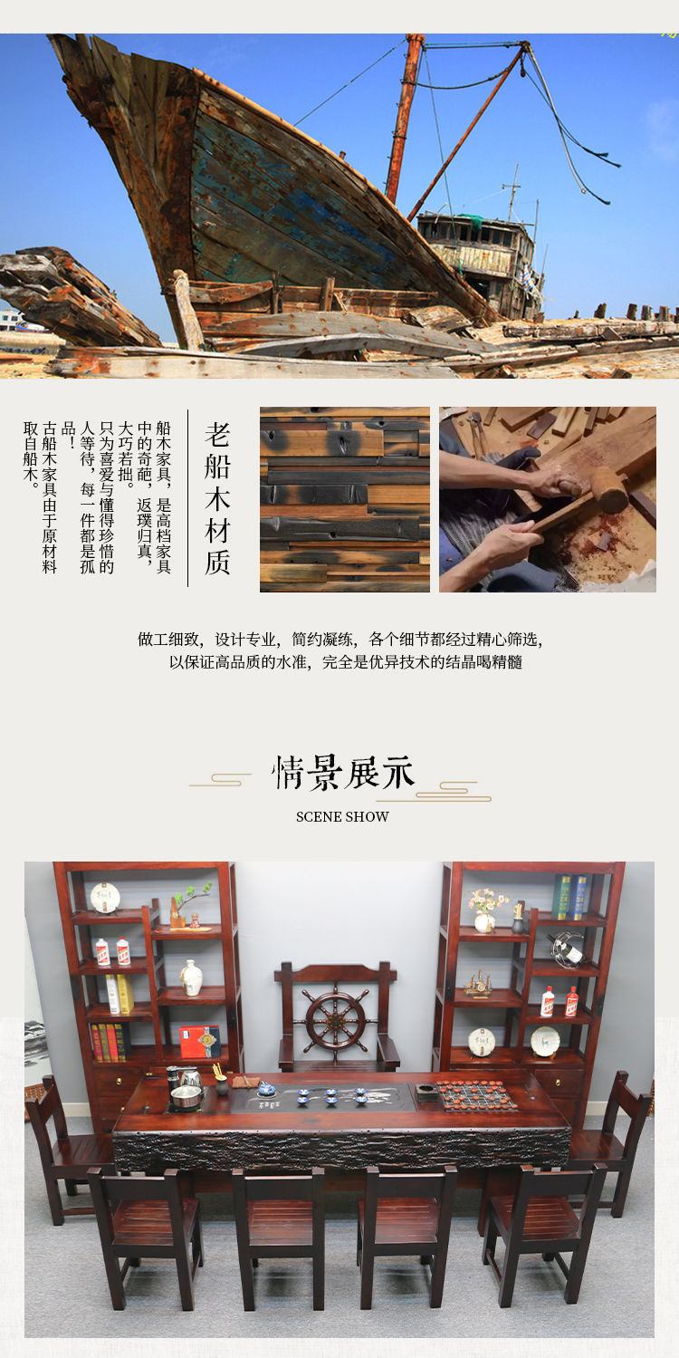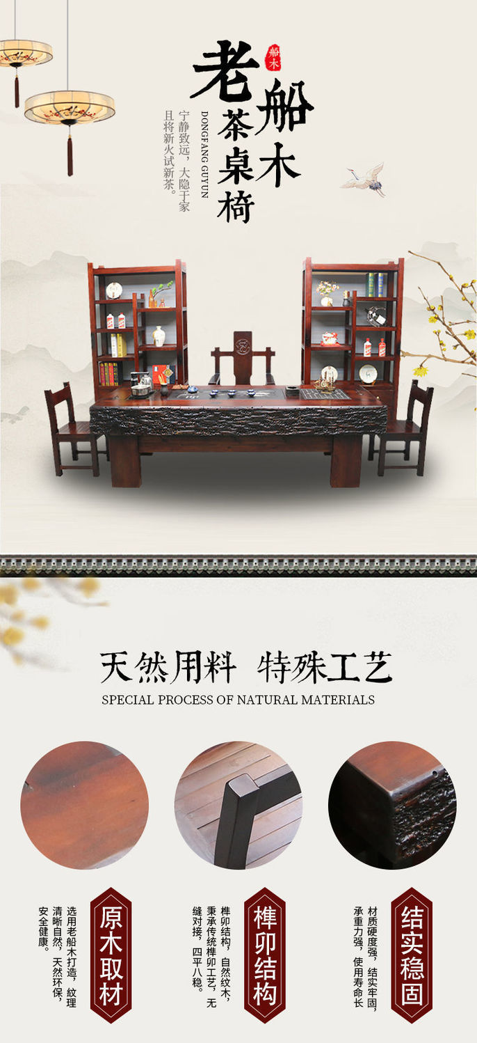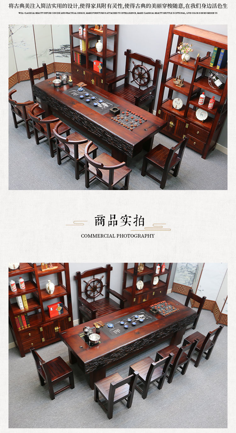 Thuyền xưa Bàn trà gỗ kết hợp ghế gỗ kung fu Bàn trà phòng khách Bàn trà văn phòng Bàn trà Bàn trà bộ