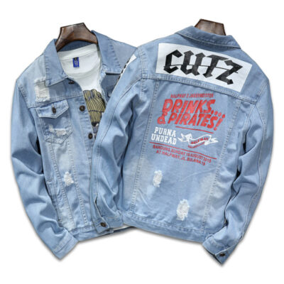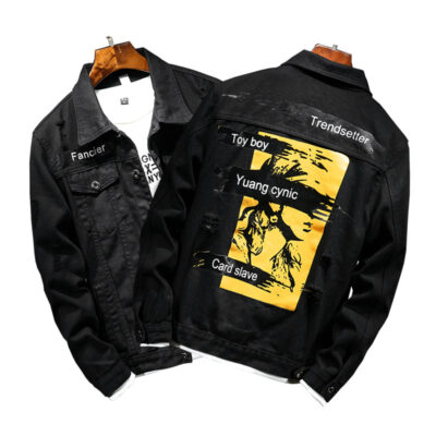 Tide hoàn toàn mới Âu Mỹ áo khoác nam mùa xuân và mùa thu giản dị áo khoác nam đường phố áo khoác denim in hình hợp thời trang nam